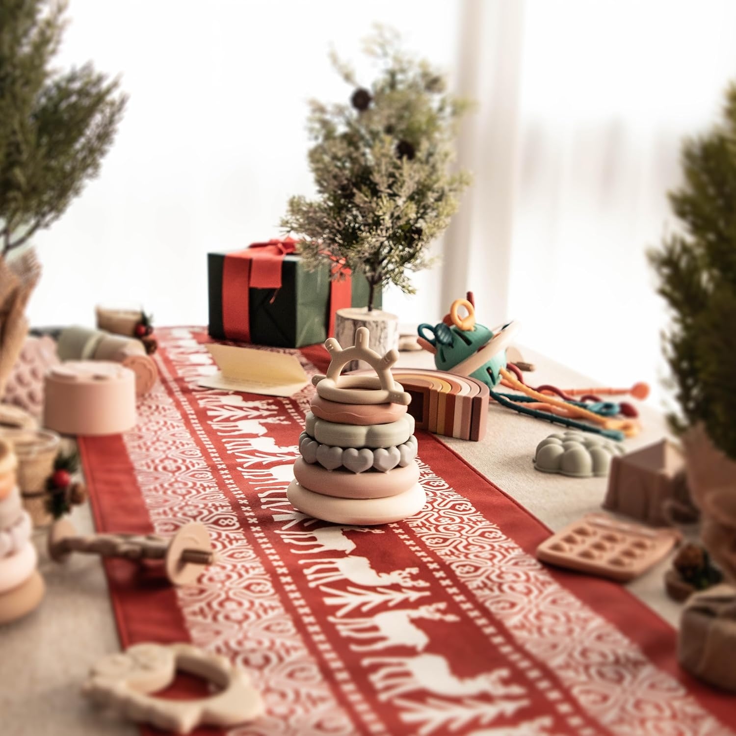 Наша башня — не просто складывающаяся игрушка. Благодаря использованию пищевого силикона элементы башни также служат мягким и безопасным прорезывателем, идеально подходящим в период прорезывания зубов.