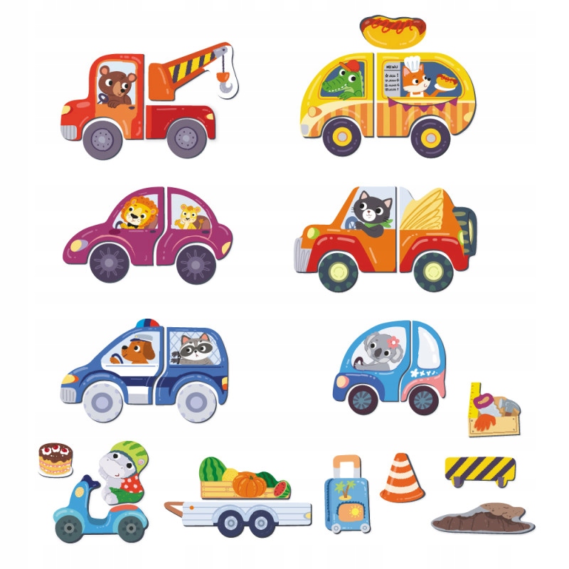 Это магнитный пазл для любителей транспорта от 3-х лет. В набор входит магнитная доска и 36 магнитных элементов, из которых можно собирать разнообразные транспортные средства.