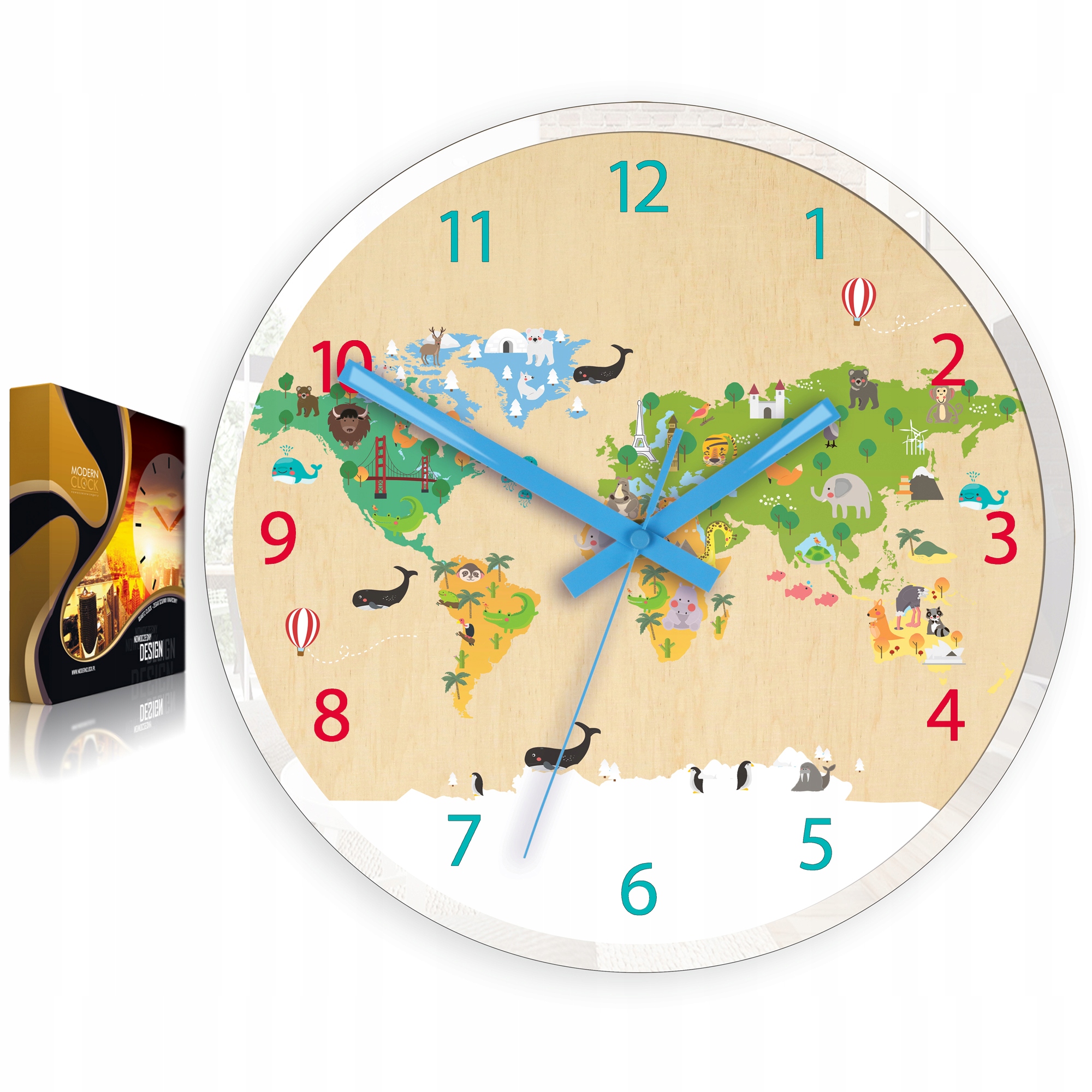 Эти часы представляют собой сочетание циферблата с красивой красочной графикой, которая научит вашего ребенка познавать мир и континенты. Все часы отделаны интересной глянцевой зеркальной отделкой. Такое сочетание цветов дает необыкновенный конечный эффект. Его дизайн очаровывает каждого, кто на него смотрит. Он идеально впишется в интерьер вашего ребенка. Интересная идея для подарка.
