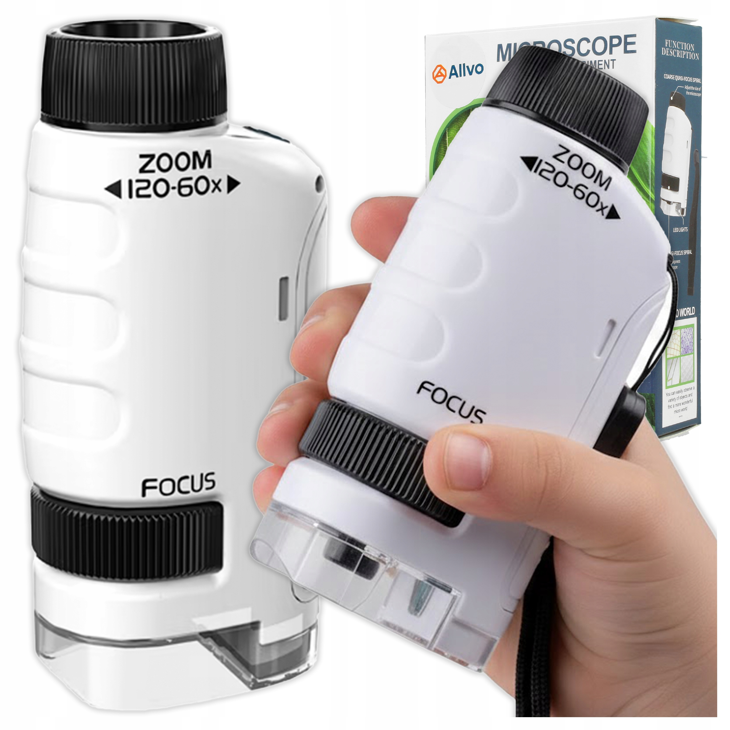 УЧЕБНЫЙ КАРМАННЫЙ МИКРОСКОП ДЛЯ ДЕТЕЙ СО СВЕТОДИОДНОЙ ПОДСВЕТКОЙ ZOOM 120-60x