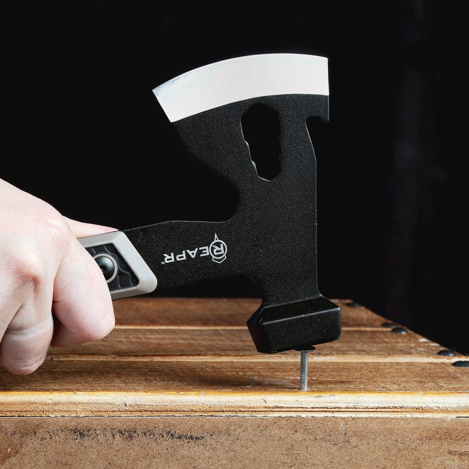 Stople, произведенный reApr универсальным топором b>, который идеально подходит для подготовки лагеря, дерево для топлива во время поездки в лес, работая на участке или кемпинге. Он оснащен широким основным лезвием, позволяющим расщеплять и рубить, и молоток.