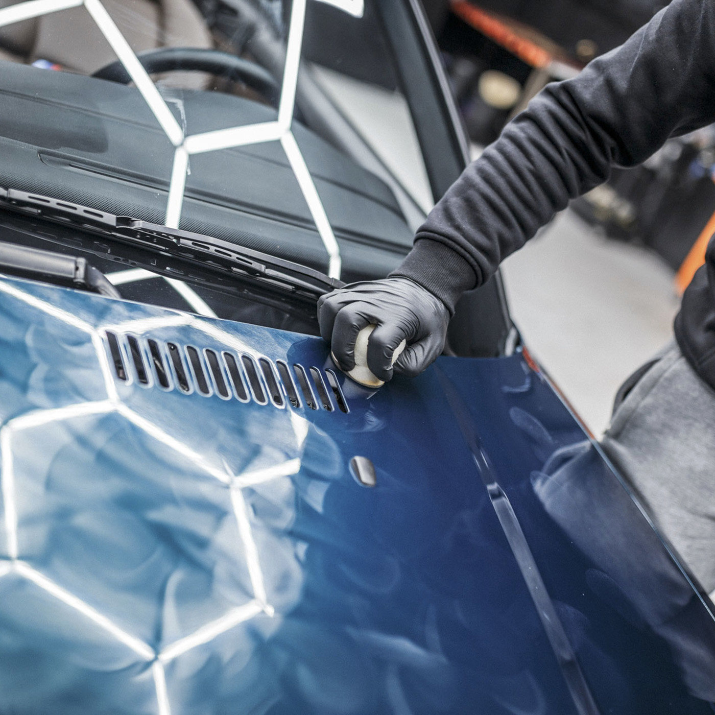 Автомобиль подготовлен, можно приступать к нанесению воска. Убедитесь, что краска полностью простерилизована с помощью средства для очистки воска Bad Boys.