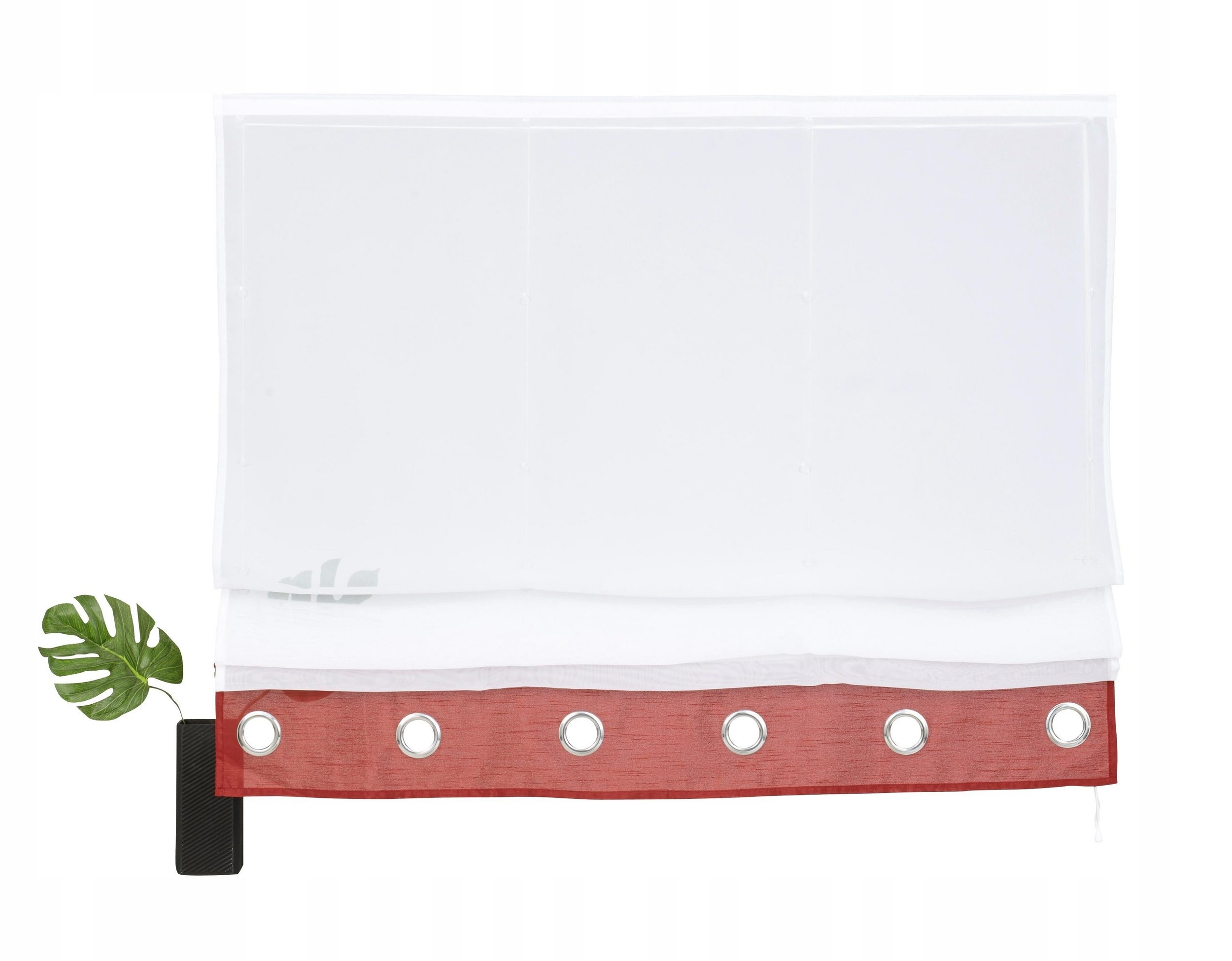Цвет белый, нижняя часть рулонной шторы бордовая.