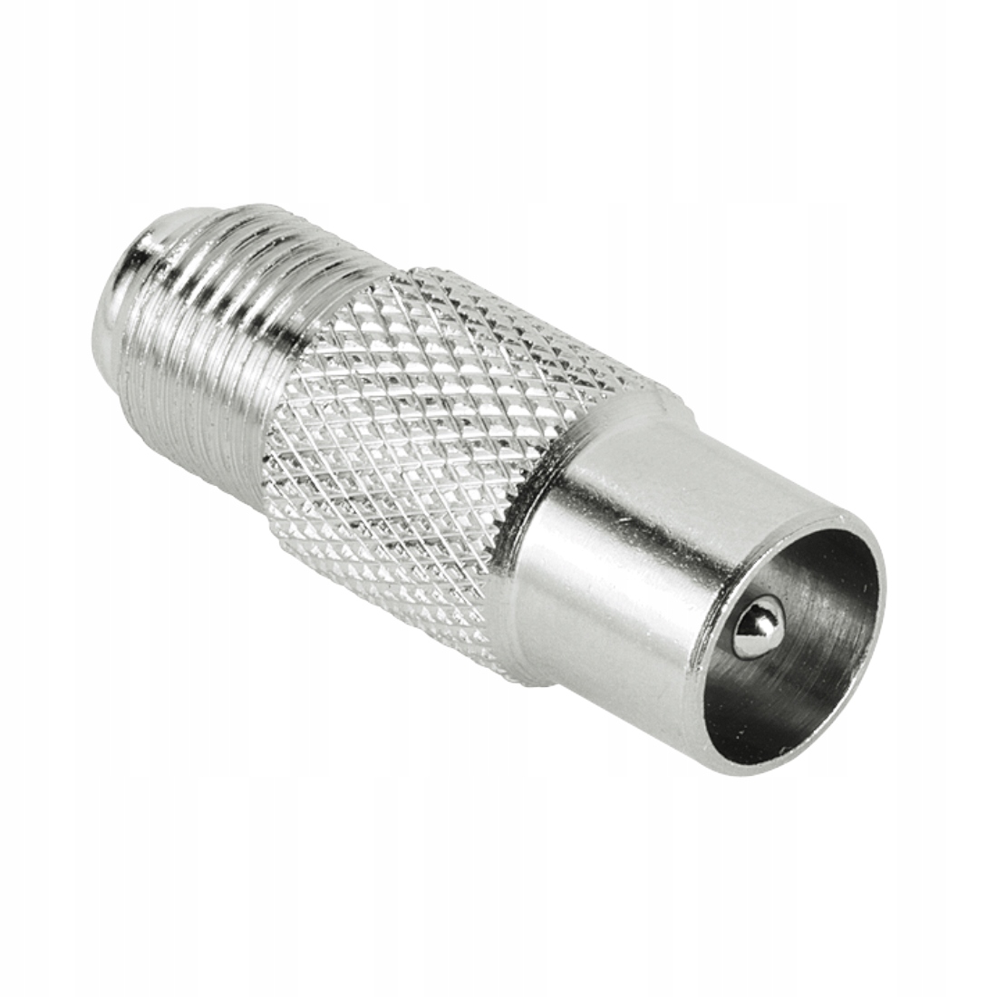 Высококачественный, металлический, экранированный переходник/адаптер ТВ-сигнала, Коаксиальный штекер (коаксиальный) 1x RF папа - 1x F мама.