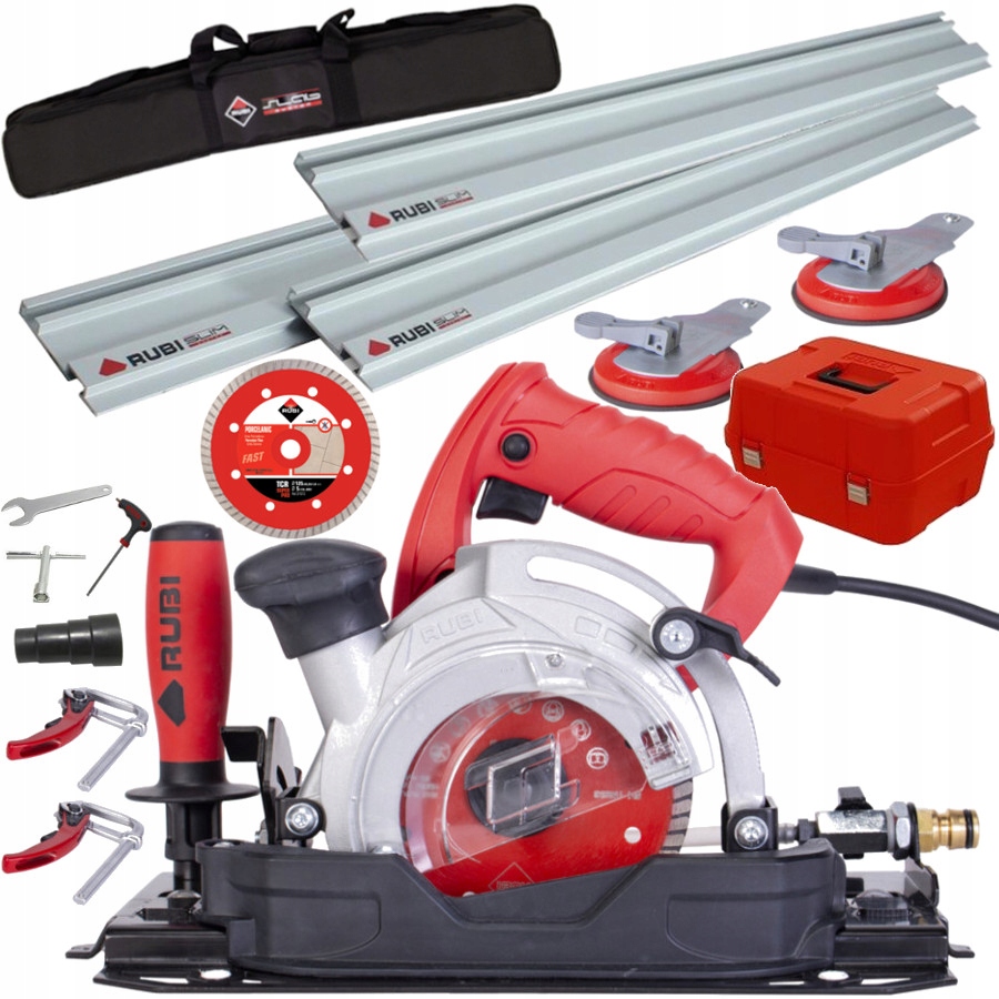 - В комплект входит: Дисковая пила ТС-125. 3 направляющие SLIM CUTTER длиной 110 см каждая (для правильной работы TC-125 использование этих направляющих ОБЯЗАТЕЛЬНО). 2 присоски для крепления на шероховатых поверхностях (RM). 1 алмазный диск TCR-125 для сухой резки керамогранита (совместим с мокрой резкой). Полотно TCR не рекомендуется для резки под углом 45°.2 зажима для дополнительного крепления направляющей SLIM. Инструментарий. Практичная текстильная сумка для транспортировки направляющих и усиленный кейс для бензопилы ТС-125. Дисковая пила RUBI TC-125 имеет двойную систему снижения и контроля пыли, образующейся при резке. Его можно подключить к пылесосу (сухая резка) или к водопроводу.