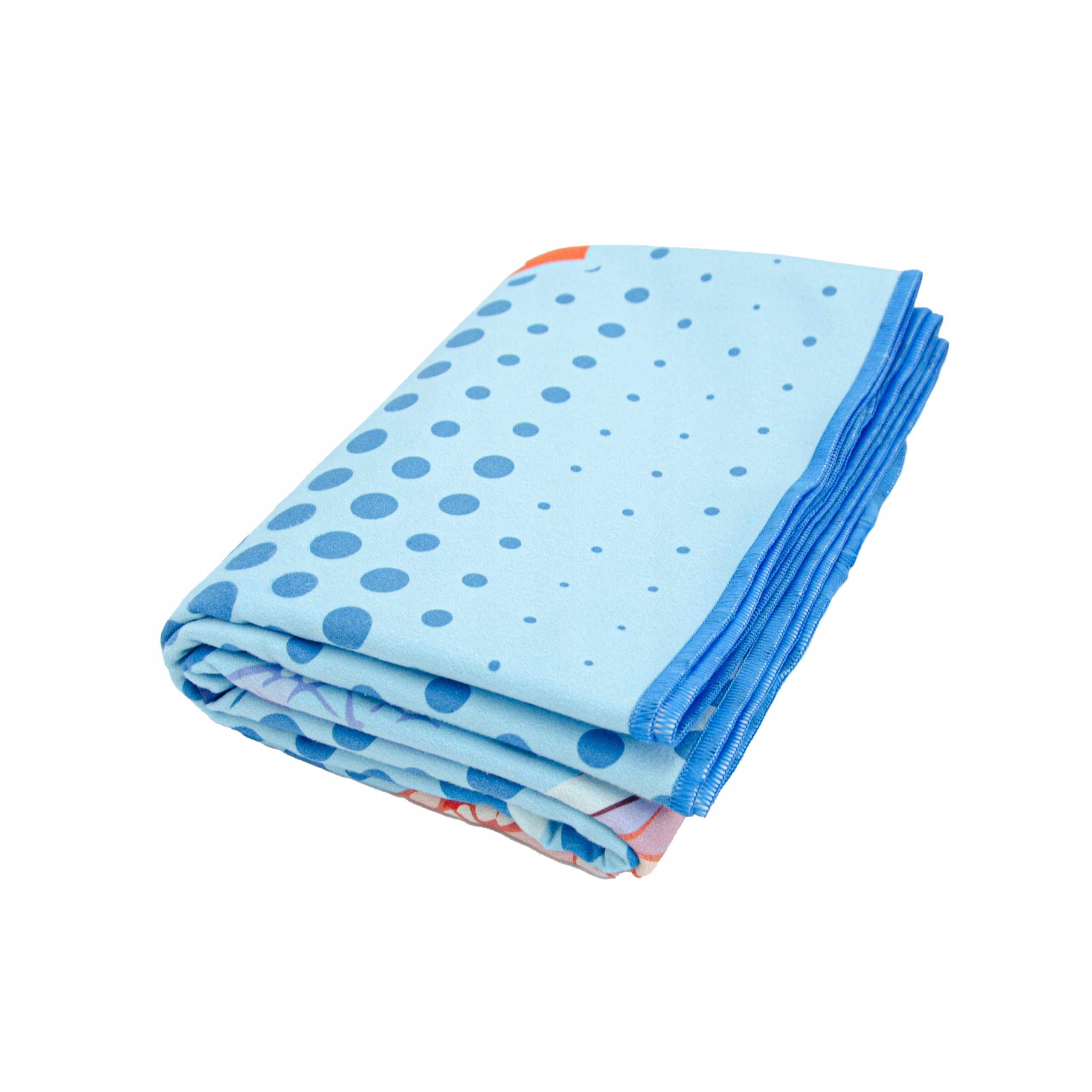 Кратко -подходящее микрофибсовое полотенце с графическим рисунком снаружи. С другой стороны, равномерный цвет материала