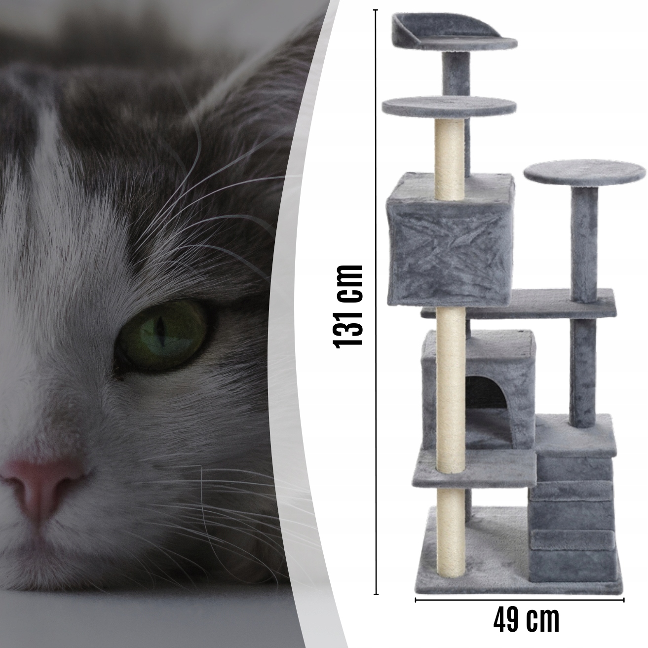 Вашей кошке нужно больше активности и веселья? Наша многофункциональная кошачья башня впечатляющей высотой 131 см – идеальное решение! Благодаря множеству элементов, таких как лестница, домик, кровать, три смотровые площадки и четыре подвесные игрушки, ваша кошка получит безграничные возможности для игр и исследований. Наша вышка для кошек – это центр развития природных инстинктов вашего питомца. Ваш кот сможет подняться на башню, исследовать разные уровни, спрятаться в уютном домике и наблюдать за окрестностями со смотровых площадок. Используйте когтеточку по своему усмотрению.