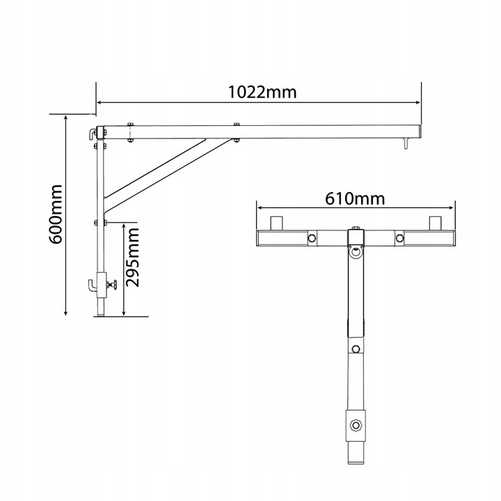 Конструкция спроектирована таким образом, чтобы максимально минимизировать перемещение оборудования во время использования. Для этого использовался специальный крюк, повернутый на 180 градусов по отношению к верхним крюкам, задача которого – прижимать оборудование к лестнице.