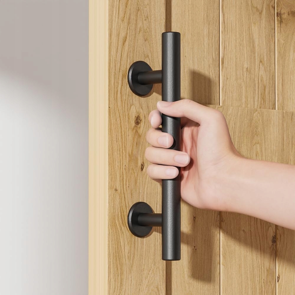 Стильный скрытый дизайн, который сливается с поверхностью двери, что делает его идеальным для мест, где ударяться о дверную ручку нежелательно. Матовая черная поверхность мягкая, приятная на ощупь и устойчивая к раздражающим отпечаткам пальцев.