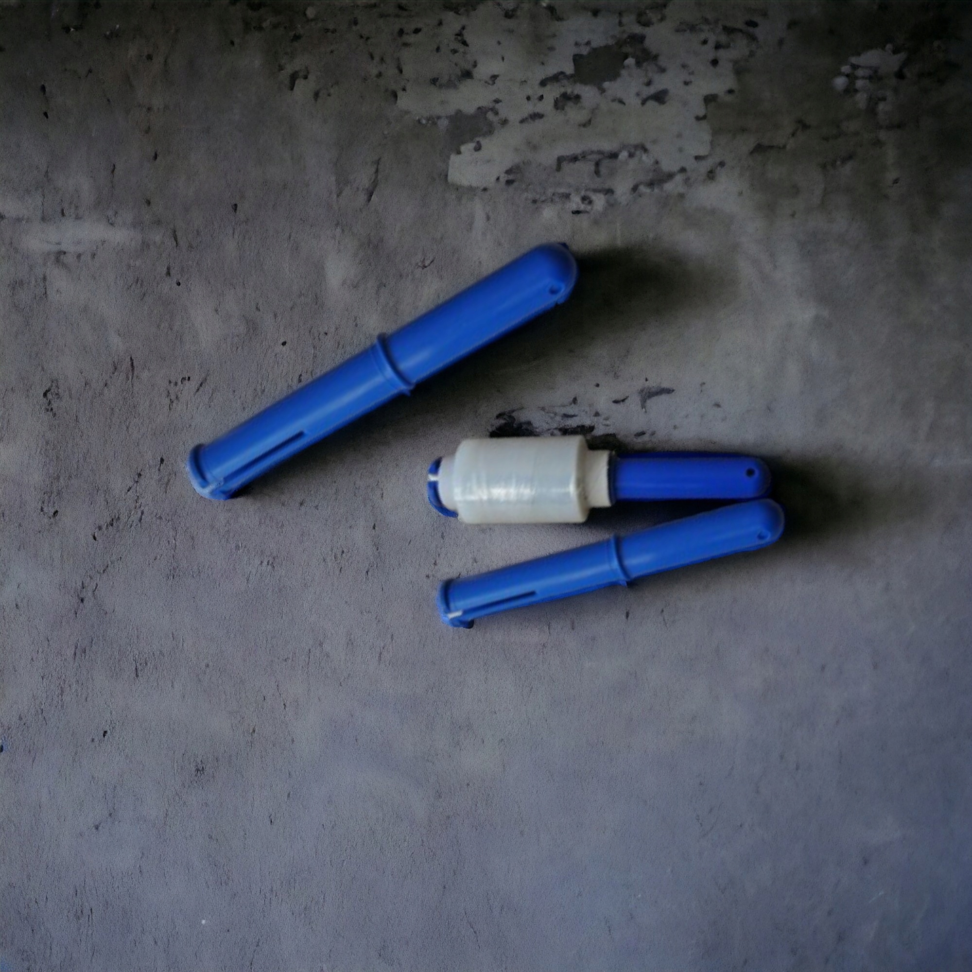Ручка диспенсера для мини-оберток, стрейч-пленка синего цвета.