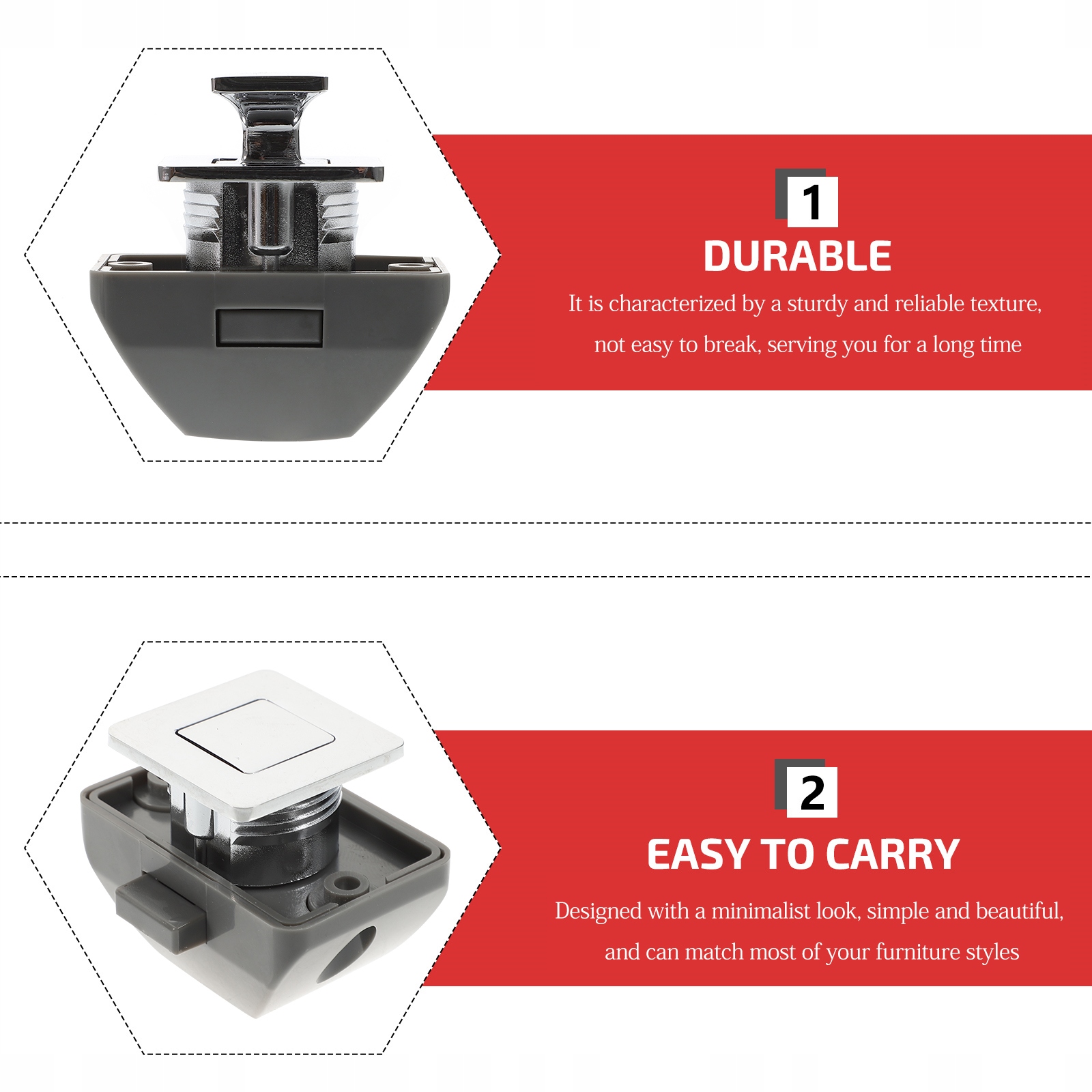 Кнопки используются на дверцах шкафов, дверцах шкафов, ящиках яхт, фургонах, автодомах и т. д.