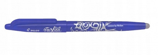 Шариковая ручка FRIXION 0,7 синяя PILOT Шариковая ручка Frixion Потрите написанный текст силиконовой насадкой и посмотрите, как он волшебным образом исчезнет. способ! Ты можешь исправить свои ошибки, - уникальные чернила идеально подходят для левшей - толщина линии письма: 0,35 мм - чернила реагируют на температуру: они исчезают при температура ок. +65°С (производится втиранием), а возврат при температуре ок. -10°С