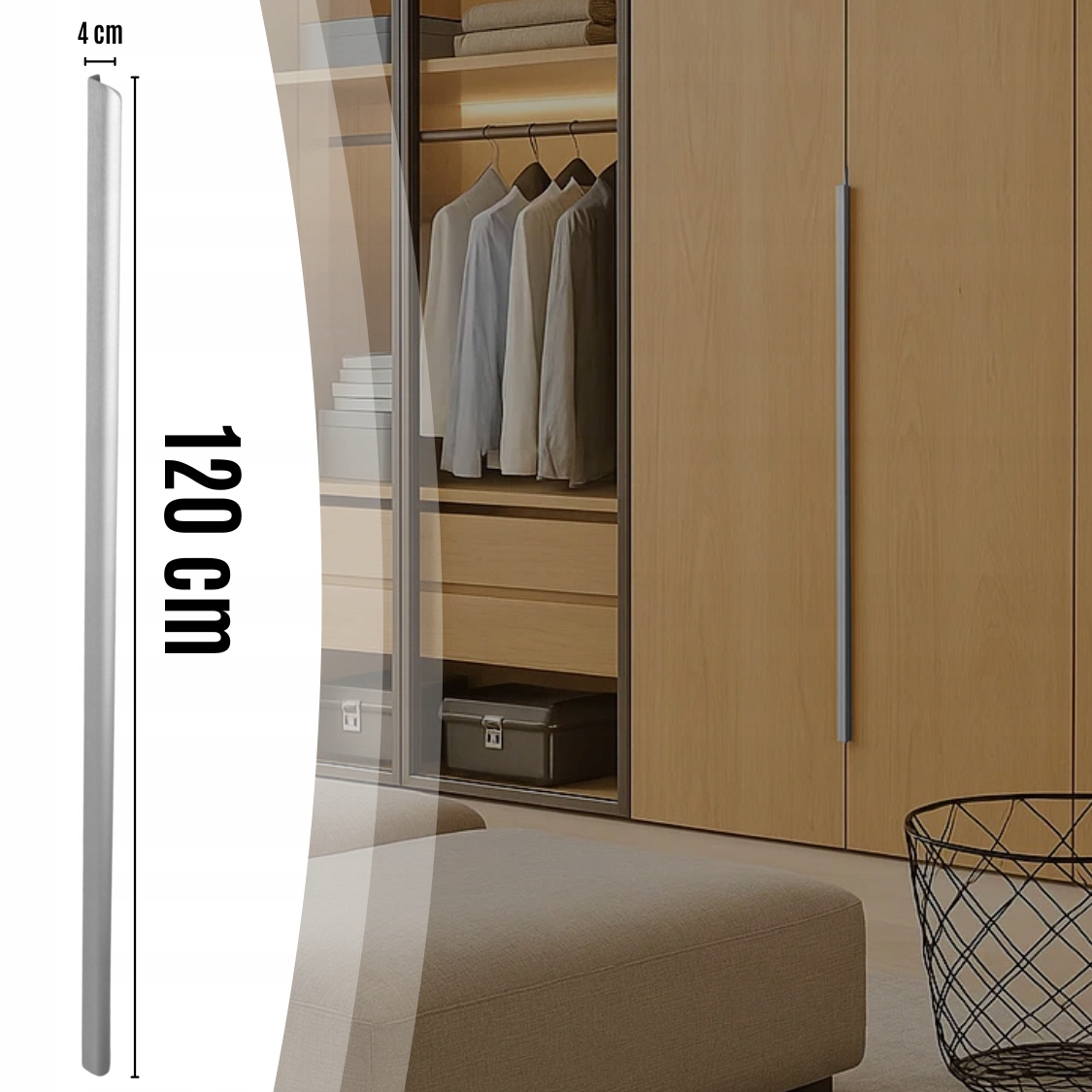 МЕБЕЛЬНАЯ РУЧКА С ДЛИННЫМ КРОМКОМ СЕРАЯ 120СМ ДЛЯ ЯЩИКОВ МЕБЕЛЬНОГО ШКАФА