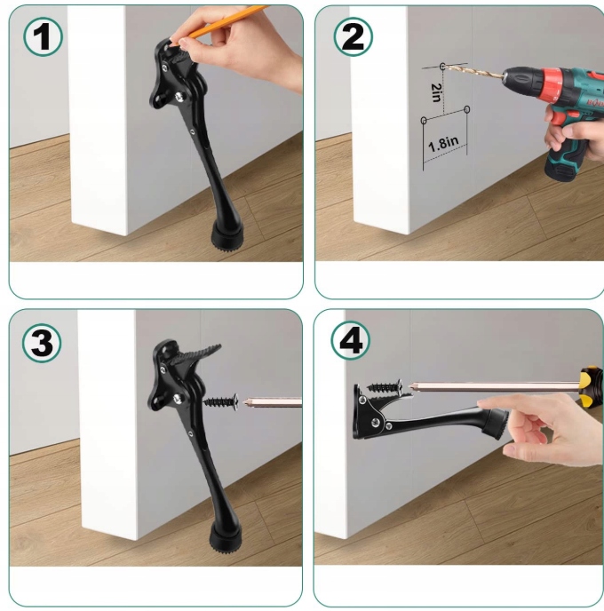 Металлический стопор с усовершенствованным прочным резиновым зубчатым наконечником может эффективно останавливать дверь и держать дверь открытой, избегая раздражающего хлопания двери. Пропорции двери могут придерживаться любых поверхностей, таких как твердая древесина, бетон, плитка, ковры.
