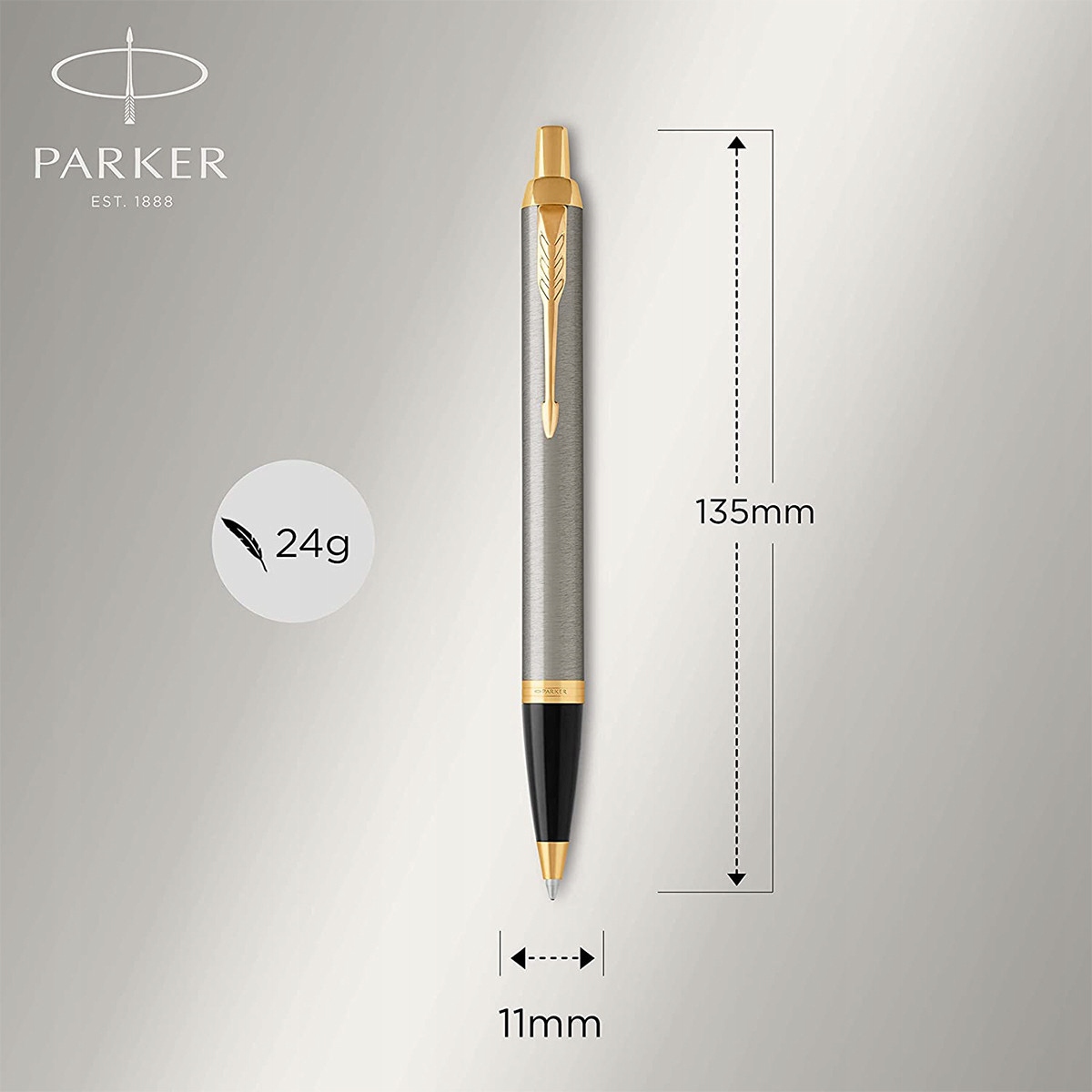 Корпус шариковой ручки и шариковой ручки изготовлен из матовой нержавеющей стали высочайшего качества. Детали покрыты 23-каратным золотом. Parker IM на данный момент является самой популярной коллекцией бренда.