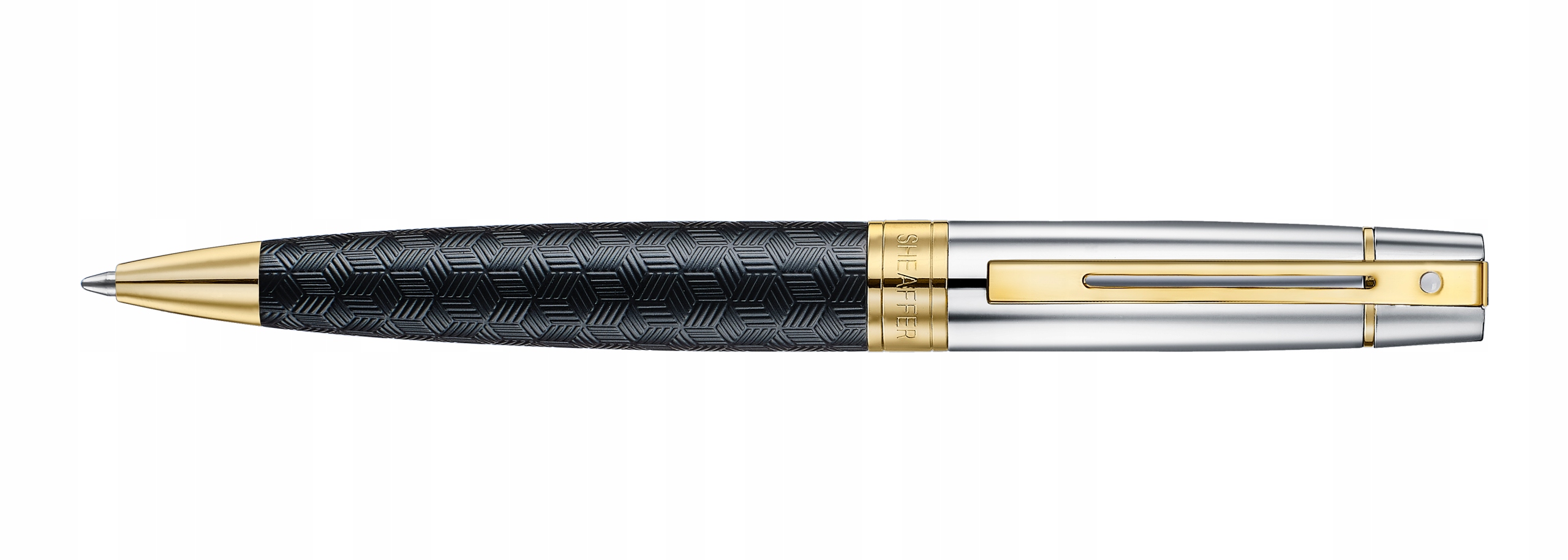 - Шариковая ручка Sheaffer коллекция 300, черный, матовый корпус с родиевым узором, хромированный колпачок, элементы золотого цвета, футляр.