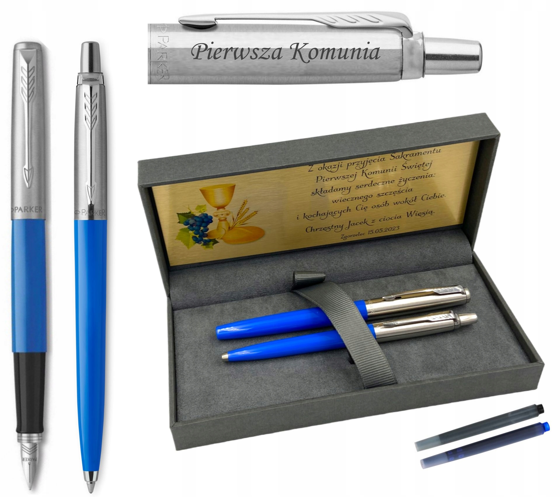 Стильный набор Parker представляет собой отличная идея подарка для причастия, особенно если вы хотите подарить ребенку, причащающемуся к первому Святому Причастию, что-то нарядное и прочное.