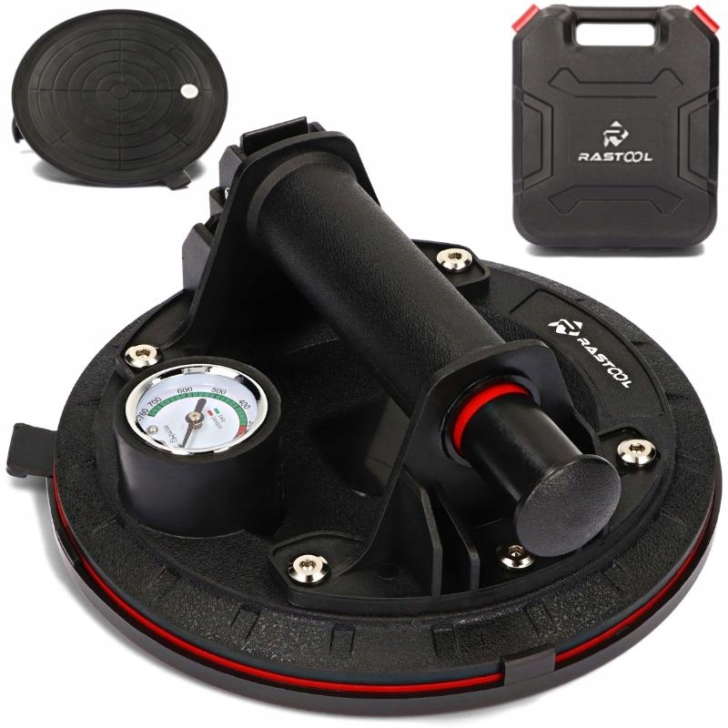 Универсальный держатель/присоска (вакуум с манометром) фирмы RASTOOL. Предназначен для переноски различных элементов с гладкой поверхностью. Прочный корпус + резиновая присоска обеспечивают безопасную и надежную передачу элементов. Широкий спектр применения облегчит работу как профессионалам, так и любителям.