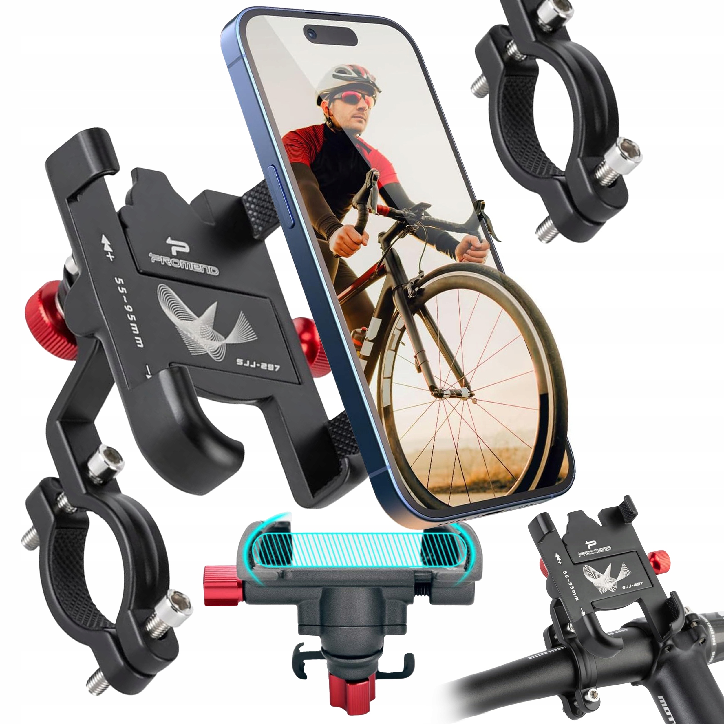 Ручка велосипеда для смартфона с смартфоном на 3 360 ° Регулируемый алюминий