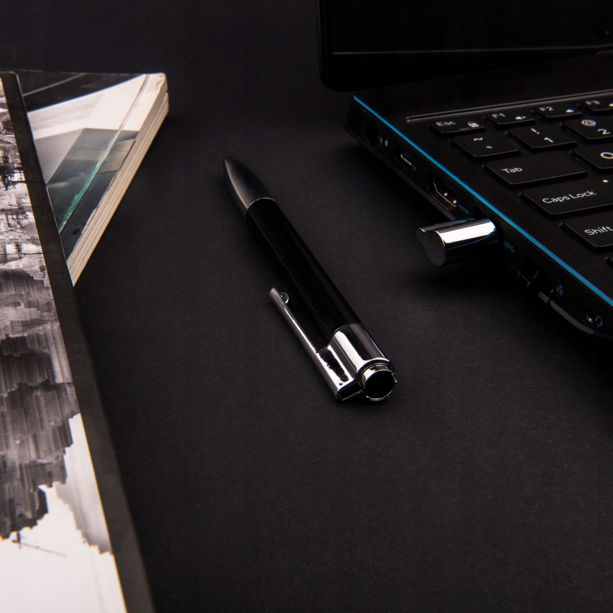 Ручка с флешкой 32 ГБ USB2.0 ЧЕРНАЯ + МЕТАЛЛИЧЕСКИЙ КЕЙС НА ПОДАРОК + ГРАВИРОВКА