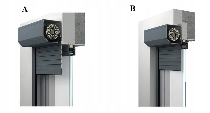 Выход привода обрисована с обратной стороной коробки через оконную раму. Преимущество такой сборки - более эстетический вид слепых и более скрытой коробки. Выберите левый или правый привод привода.