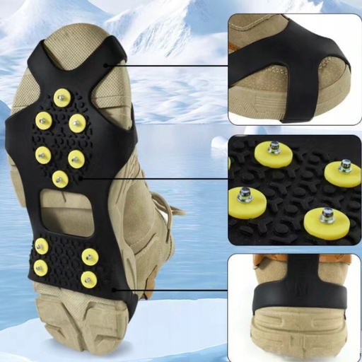 Зимние ручки повышают вашу безопасность при ходьбе по скользкой поверхности. Имеют 10 шипов, которые улучшают сцепление на льду, снегу и обледенелой поверхности. Гибкий материал позволяет легко надевать накладки на большинство туфель размеров 39–43. Модель предназначена для любительского использования – идеальна для прогулок и повседневных выходов в свет.