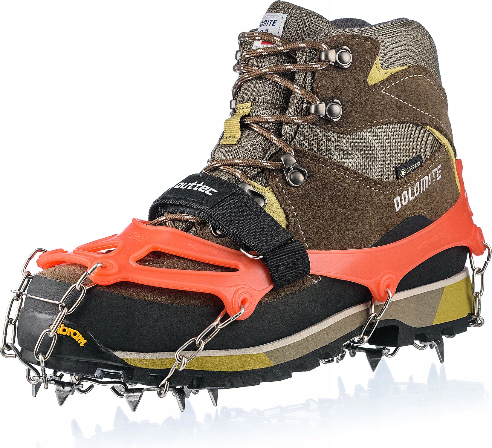 Эта модель предназначена для любительского использования. Ручки легкие и удобные, а значит, удобны в использовании. Их очень легко надевать и снимать. Ручки имеют усиленную пяточную подушечку, которая обеспечит свободный и безопасный спуск. Конструкция кошек и укрепление в передней части стопы обеспечивают комфорт при подъеме в гору. Эта модель также имеет противоскользящий нижний фиксатор, который удерживает ручки в обуви. Кошки Outtec имеют дополнительную защиту ремня, обеспечивающую удобную посадку