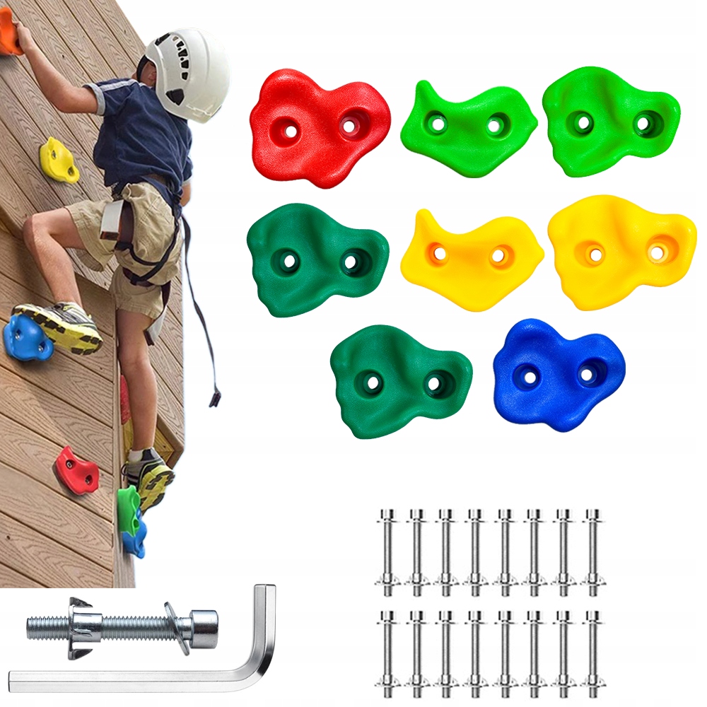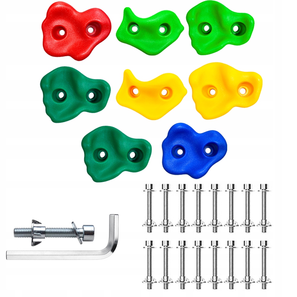 - В комплект ручек для лазанья входит целых 8 штук ручек, которые помогут легко обустроить место для игр детей,