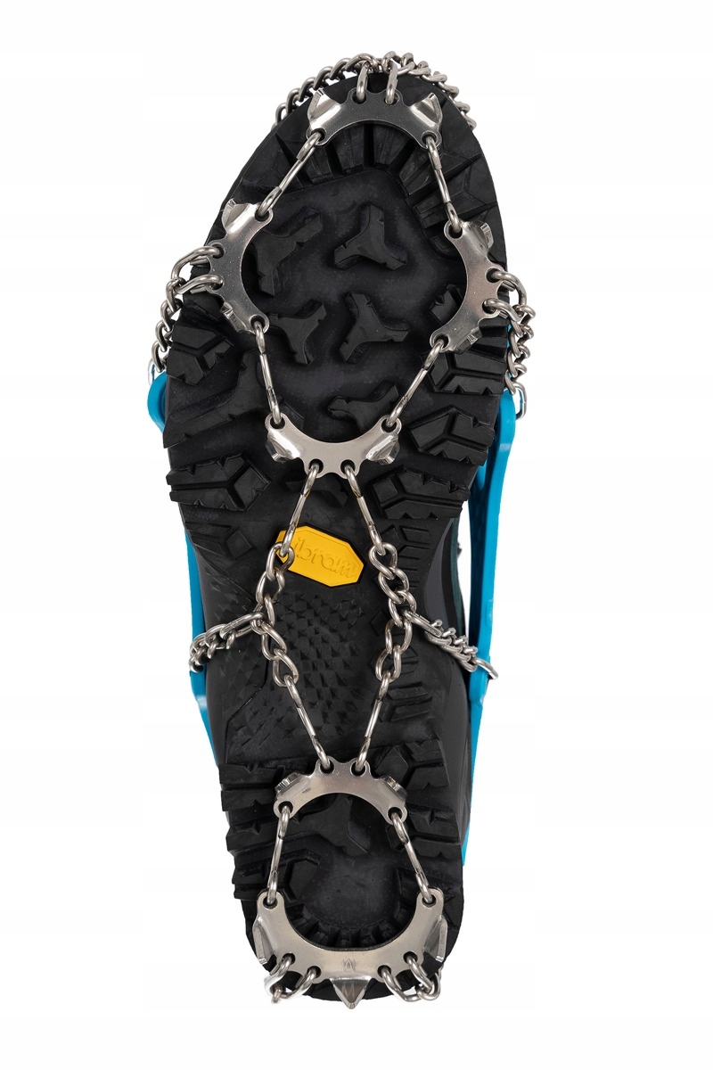 ✅ Их конструкция - продуманная и очень универсальная - позволяет хорошо прилегать к обуви, в том числе к менее жесткой походной обуви, поэтому они также подходят для городских условий в зимних условиях. Их преимуществом является небольшой вес – всего 295 г. Они оснащены прочным гибким пластиковым ободом, надеваемым на верхнюю часть обуви, к которому не прилипает снег. В свою очередь места крепления цепей усилены втулками, что снижает риск поломки. 13 стальных зубьев расположены так, что подходят как для подходов, так и для спусков, обеспечивая высокую устойчивость и хорошее сцепление со льдом и замерзшим снегом. Падения становятся просто плохим воспоминанием.