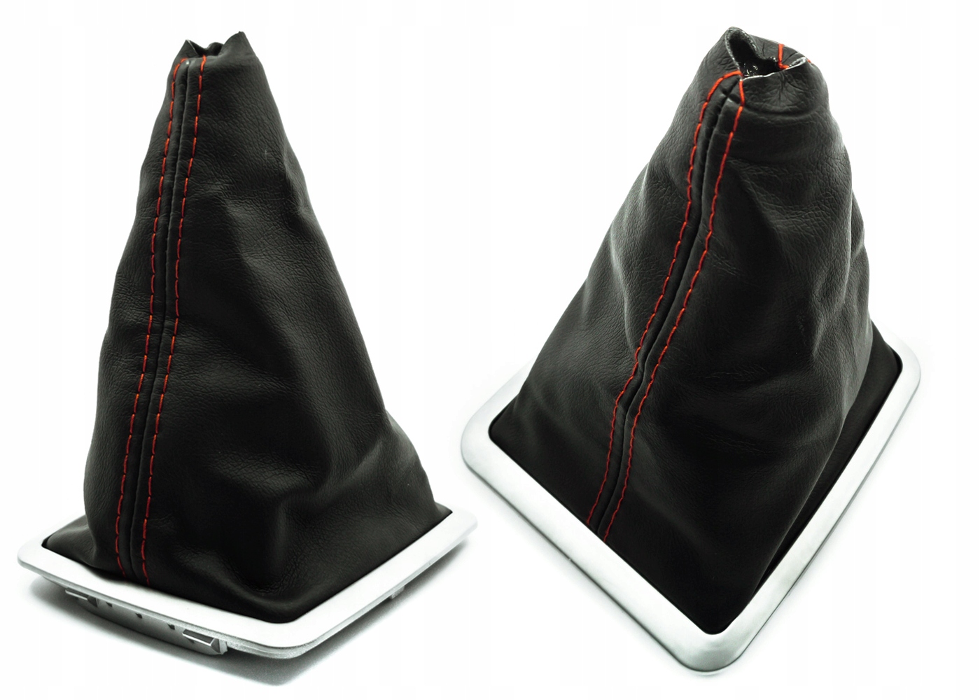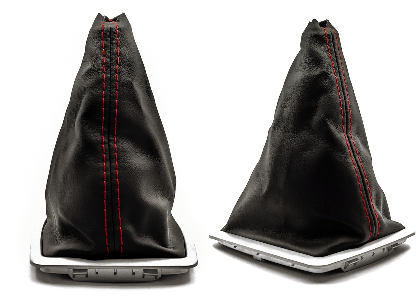 - Черные кожаные кожевики, красиво сшитые красной ниткой.