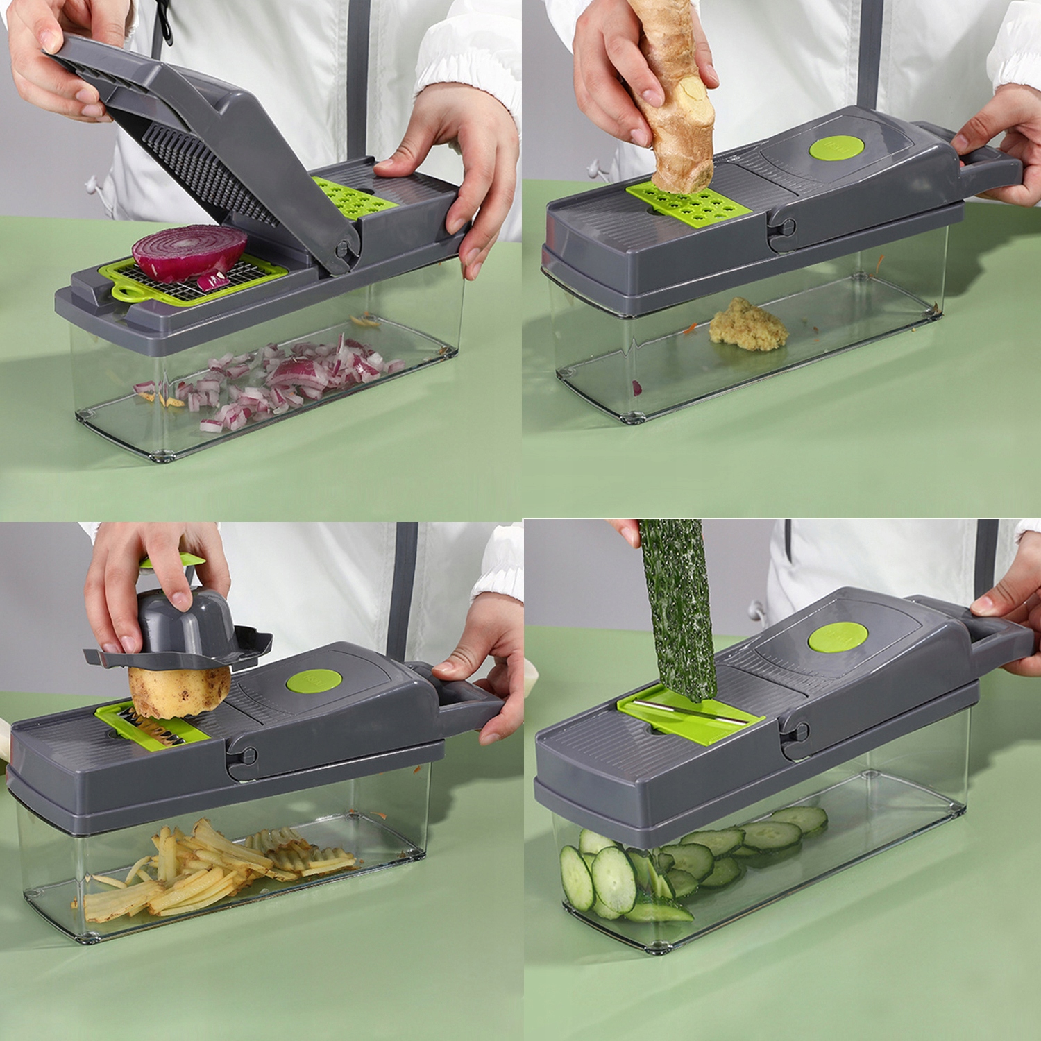 ❎ МНОГОФУНКЦИОНАЛЬНОСТЬ Благодаря 15 элементам и сменным насадкам этот слайсер предлагает широкий спектр возможностей приготовления пищи, от нарезки до терки и измельчения.