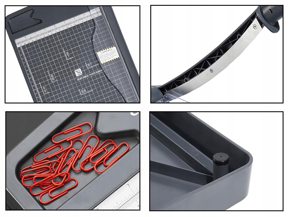 - Нож для бумаги удобен для различных применений, таких как резка бумаги, фотографий, изображений, этикеток, визитных карточек и другой бумажной продукции.
