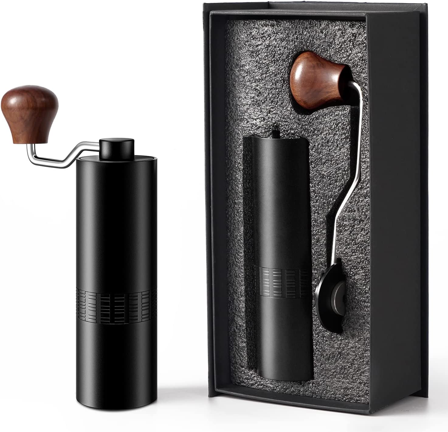 TWOMEOW Ручная кофемолка, 28 регулируемых степеней помола, нержавеющая сталь, ручная кофемолка, капельный эспрессо, френч-пресс, конический механизм, черный.