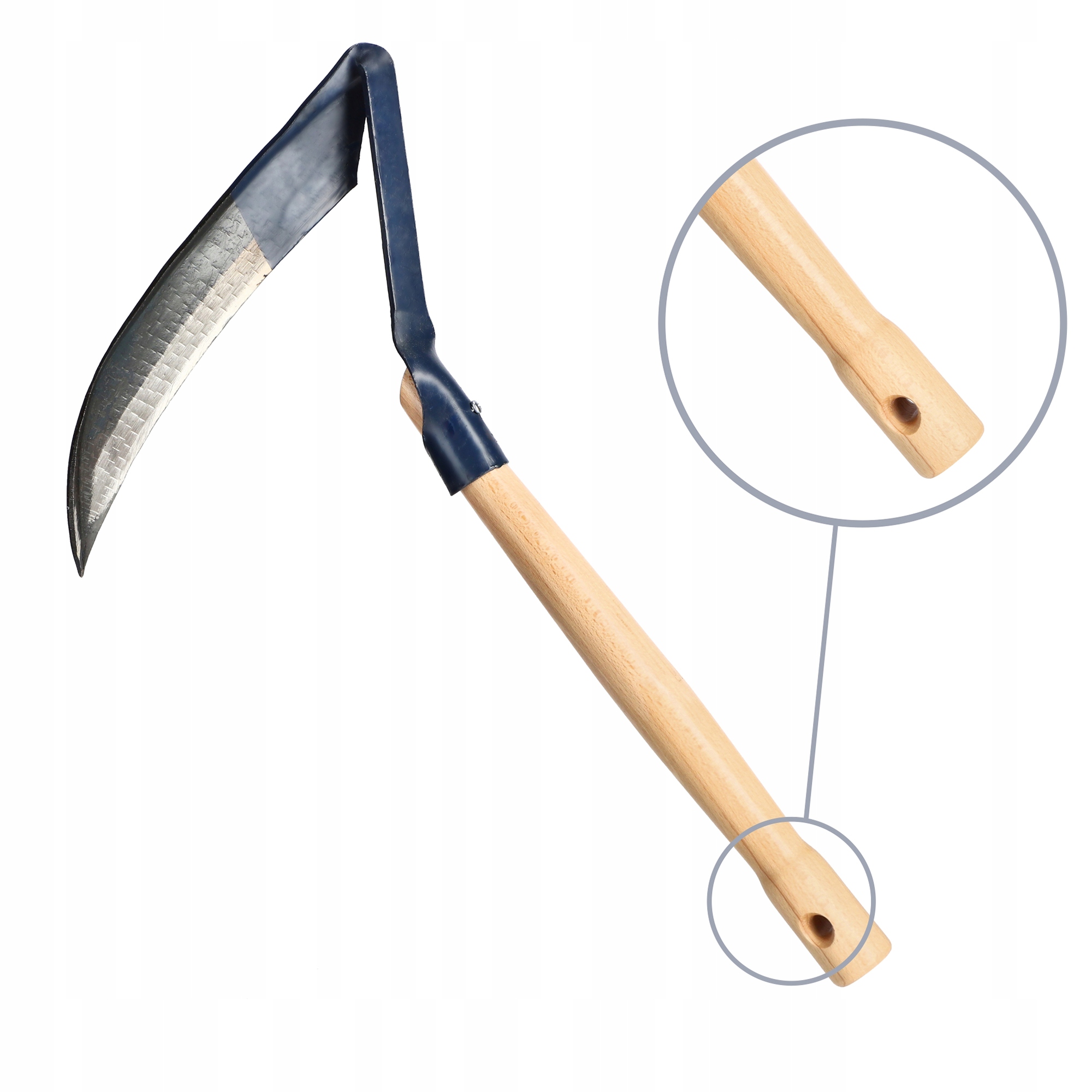 Инструмент удобен в хранении – на конце ручки имеется специальное отверстие. Благодаря ему косу можно повесить на крючок в гараже или сарае. Длина инструмента 50 см, ширина головки 31 см.