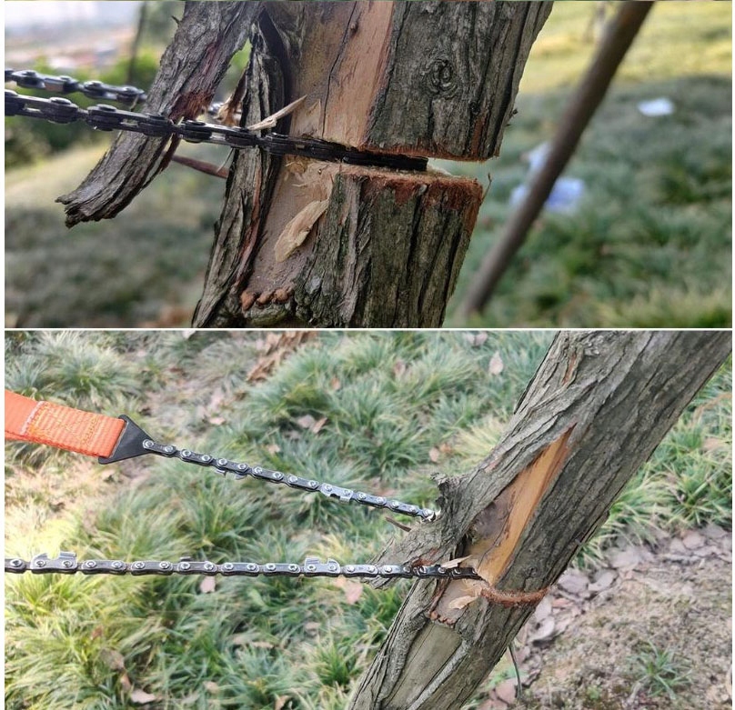 Портативная туристическая пила, выживание. Легкий и обеспечивает хорошие результаты резки. Зубья как у стандартных цепей - можно затачивать.