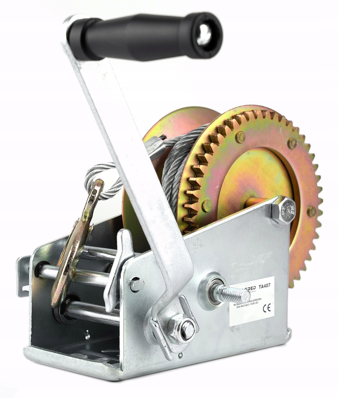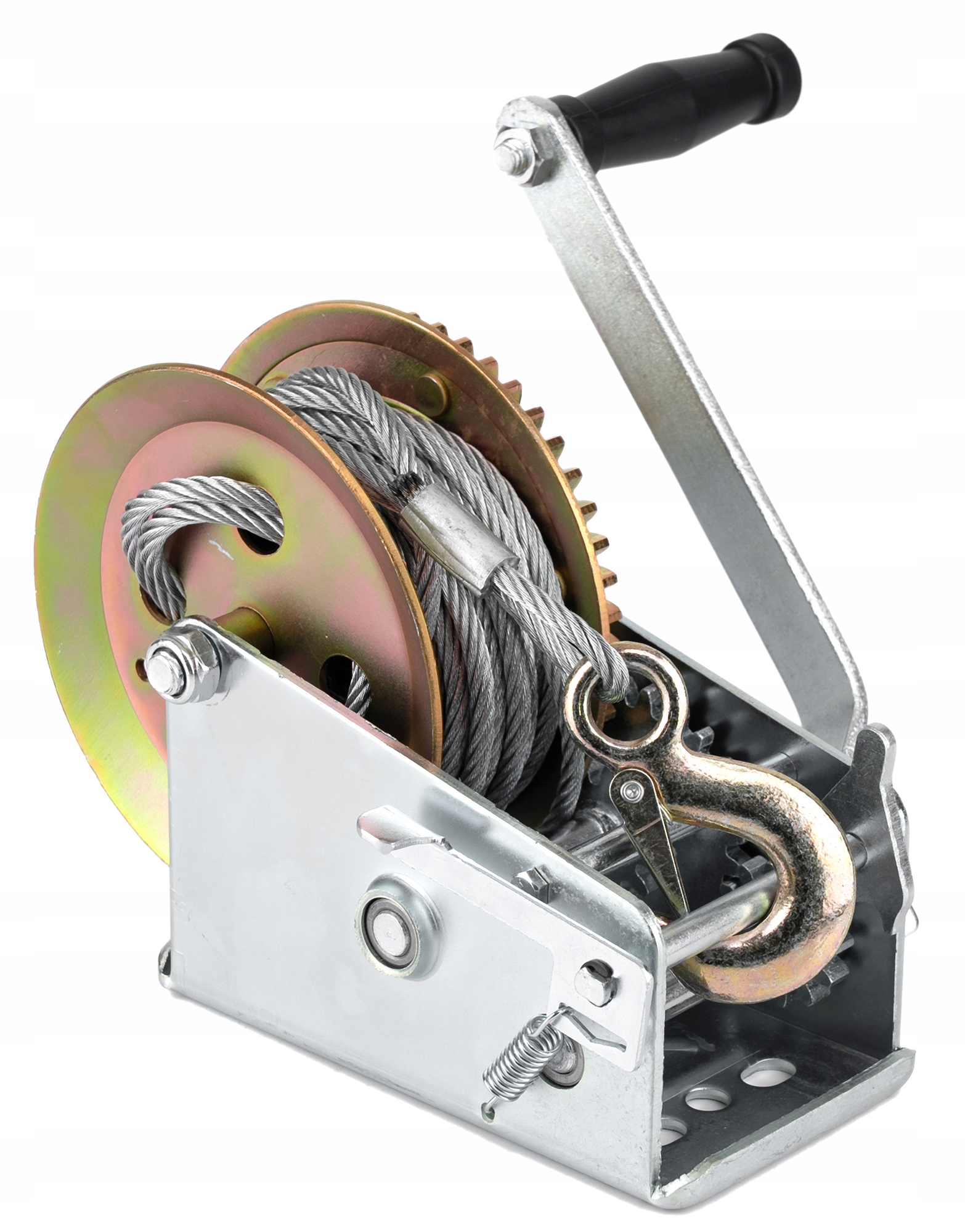 Устройство изготовлено из высококачественной конструкционной стали. Литой крючок имеет возвратную пружину. Устройство управляется рукояткой с храповым механизмом, позволяющей втягивать и опускать предметы. Идеальное оборудование для натягивания, связывания, закрепления и перетягивания тяжелых и крупных предметов.