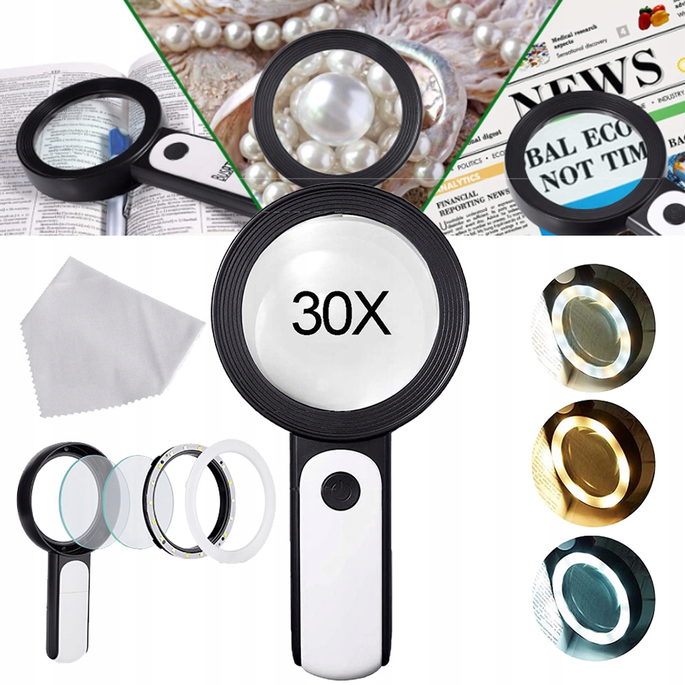 - - 30-кратная лупа: оснащенная двойными оптическими стеклянными линзами, эта лупа обеспечивает 30-кратное увеличение, устойчива к царапинам и прозрачна, что поможет пожилым людям и людям. люди с нарушениями зрения читают легко и четко.