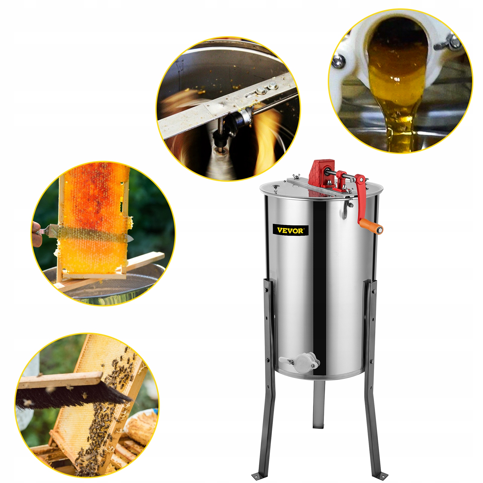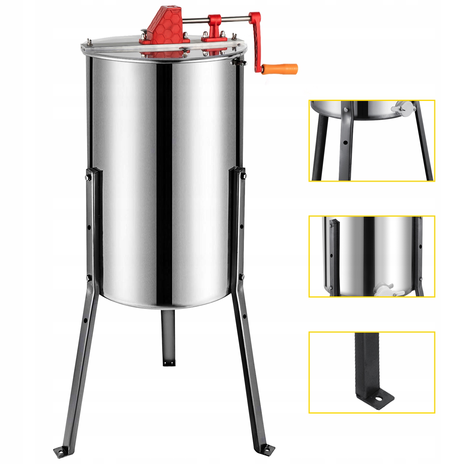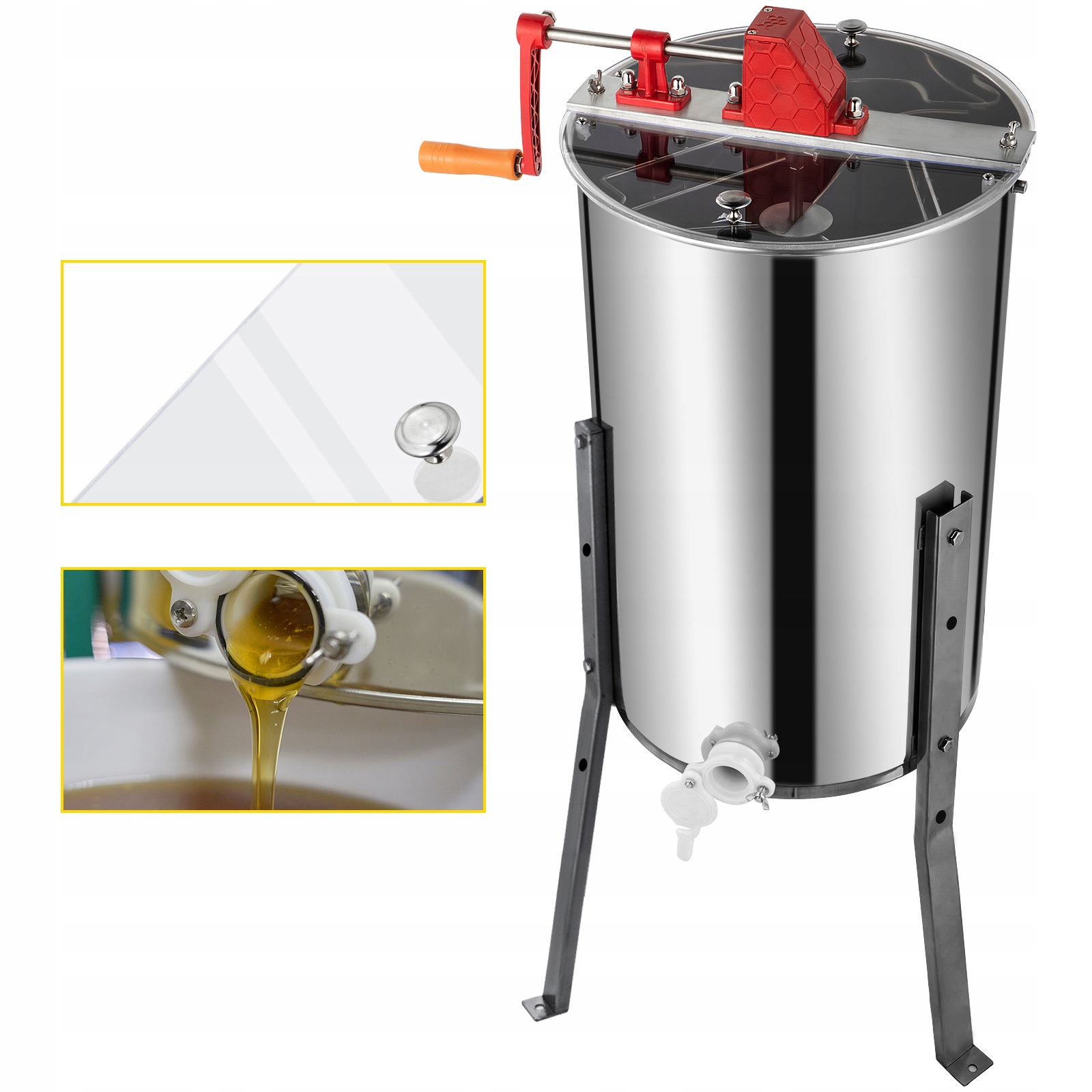 Гуманитарный дизайн: 2-дюймовая заслонка для меда в нижней части резервуара позволяет меду течь свободно. Две прозрачные крышки из оргстекла позволяют контролировать процесс экстракции во время сбора меда. А регулируемая высота адаптируется к различным потребностям.