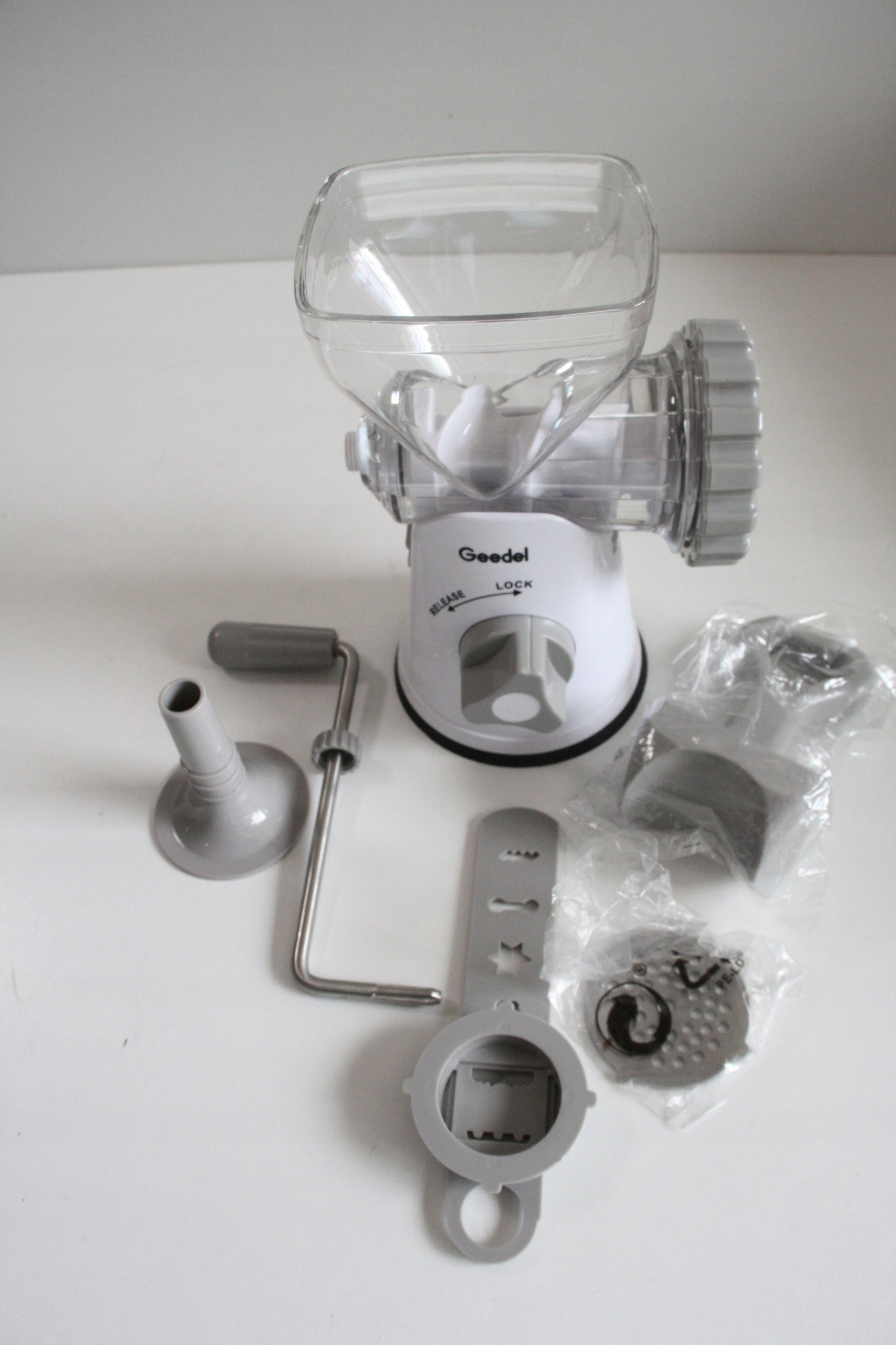 - Достаточно безопасно: многократно поворачивая ручку, ручная мясорубка поможет вам получить фарш, не касаясь лезвий. Колбасный наполнитель изготовлен из материала, не содержащего BPA, который соответствует пищевым стандартам.