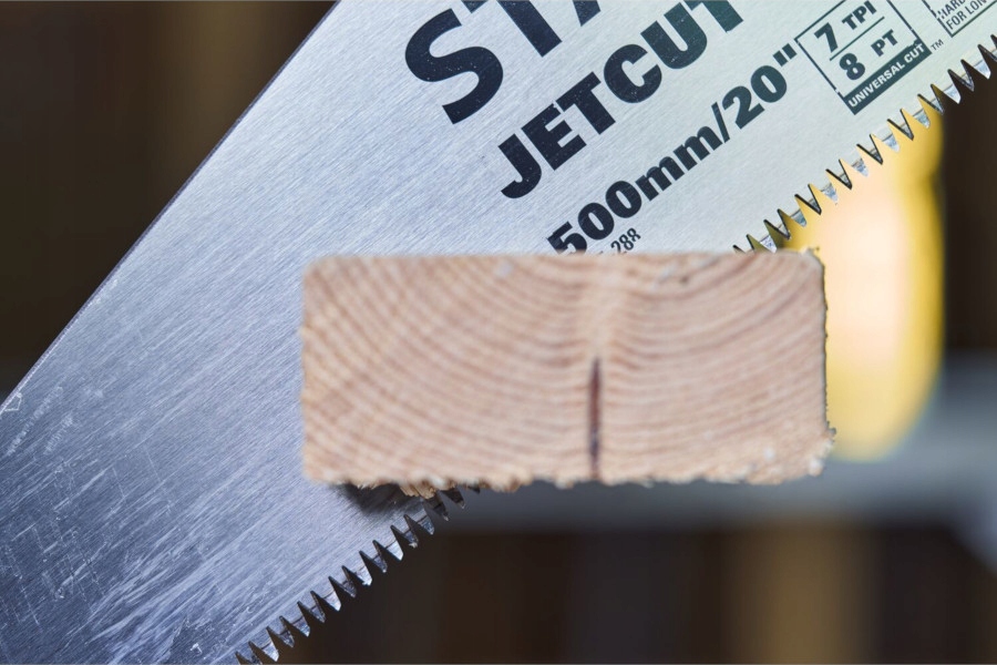 - Пила с 7 зубьями на дюйм позволяет быстро резать вдоль или поперек волокон.
