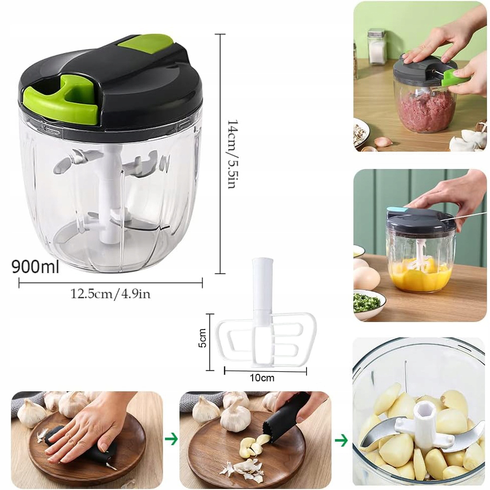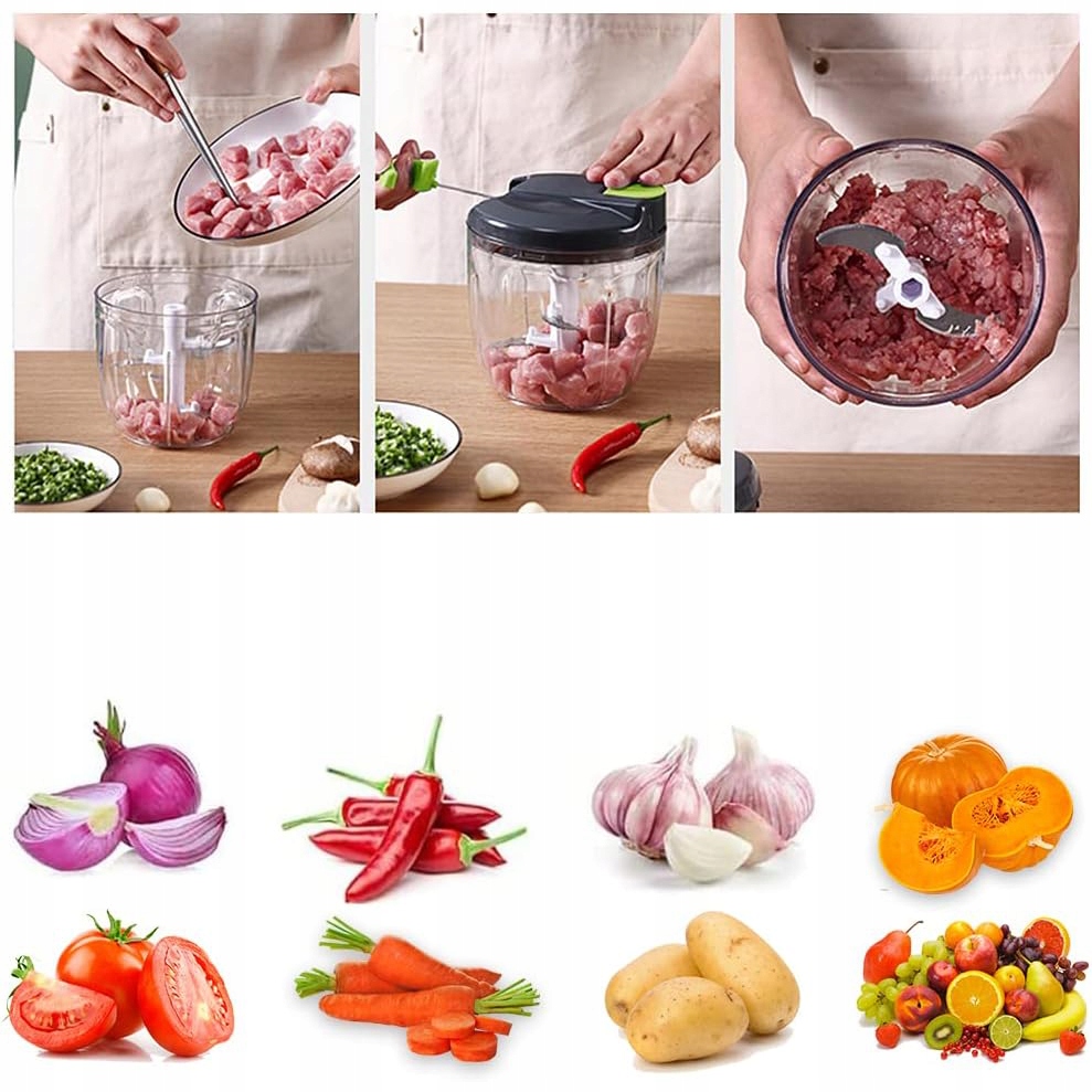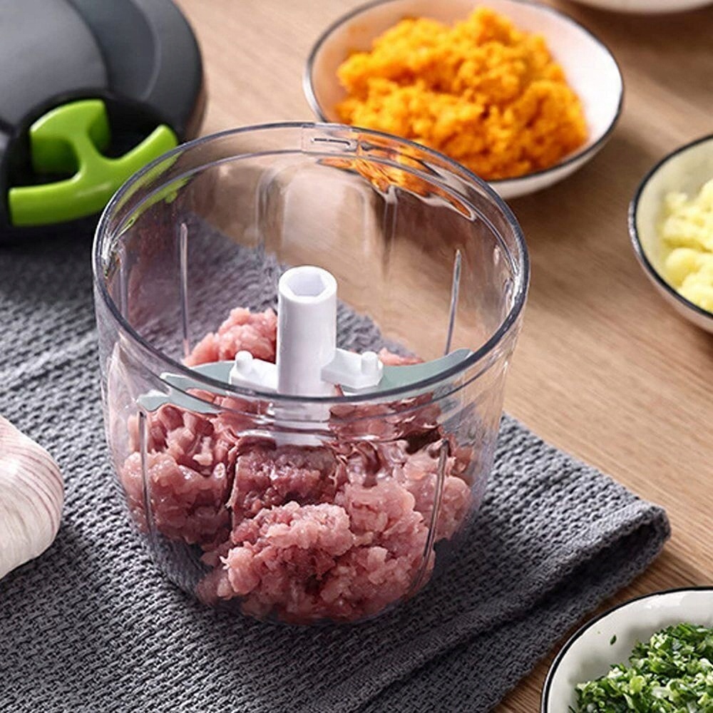 🥩Очень эффективно: Мини-кухонные комбайны работают без электричества. Нарезайте почти все виды продуктов быстро и без усилий — чем сильнее вы тянете за веревку, тем тоньше получится результат! Ручной измельчитель чеснока идеально подходит для домашней кухни, путешествий и кемпинга. Также может стать подарком близкому человеку.