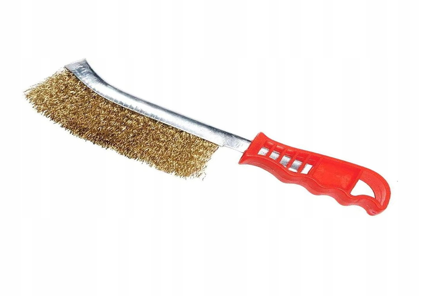 Щетка из гофрированной латунной проволоки. Предназначен для очистки металлических поверхностей от ржавчины, краски, лака, а также для очистки сварных швов и резьбы. Ручка изготовлена из прочного пластика с высокой устойчивостью к поломке.
