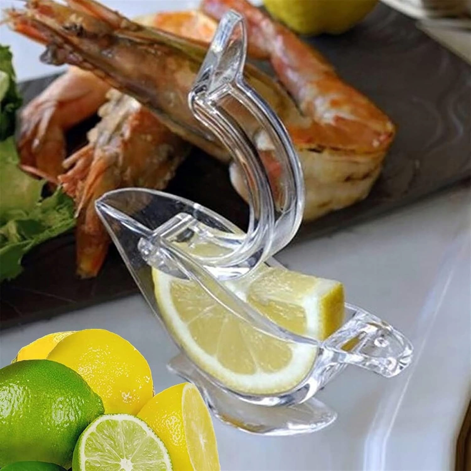 Соковыжималка для ломтиков лимона сделает вашу посуду элегантной и практичной. Это добавит изысканности каждому приему пищи - как для большой группы, так и для одного человека. Соковыжималка изготовлена из прочного и долговечного материала, что позволяет очень тщательно выжимать сок из каждого цитрусового. Она также прекрасно подходит для получения сока из других мягких фруктов.