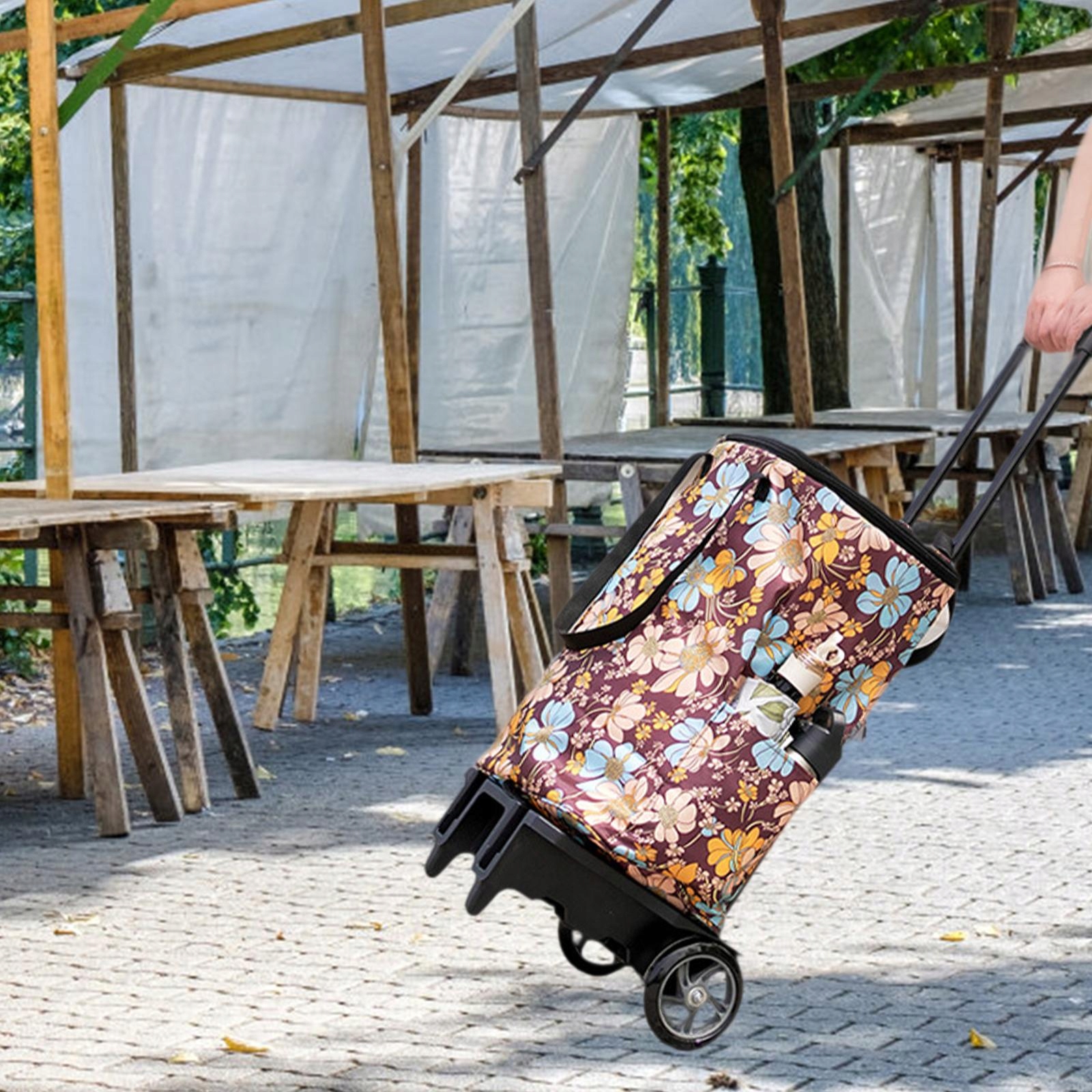 Компактная, прочная и удобная тележка для продуктов на ручной тележке для офисного переезда и коричневая цветочная сумка