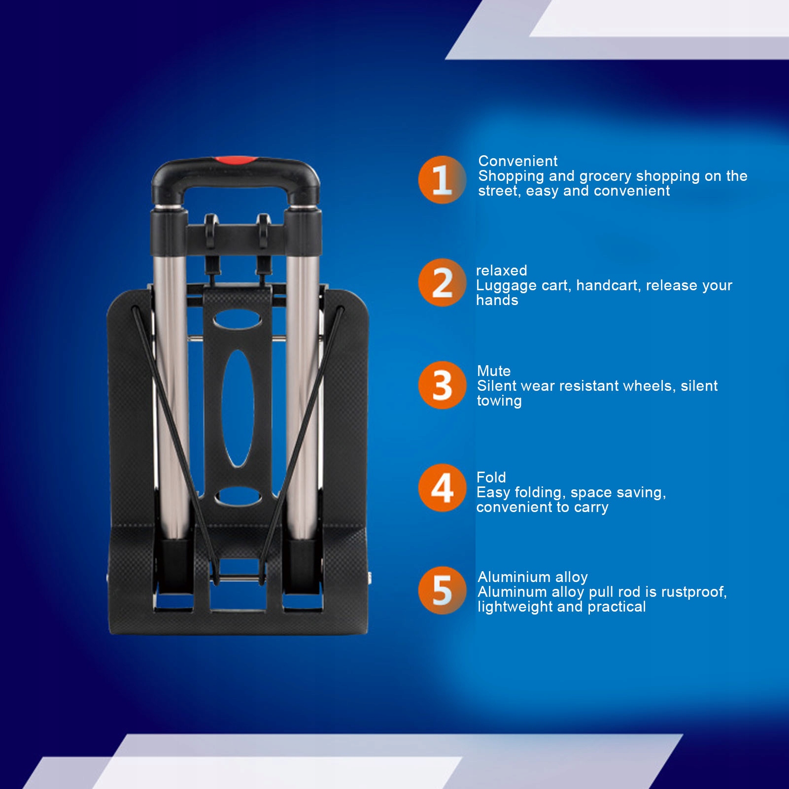 4. Универсальное использование: тележка Dolly Cart идеально подходит для покупок, продуктов, перевозки багажа и многого другого, удовлетворяя различные потребности и отличаясь высокой практичностью.