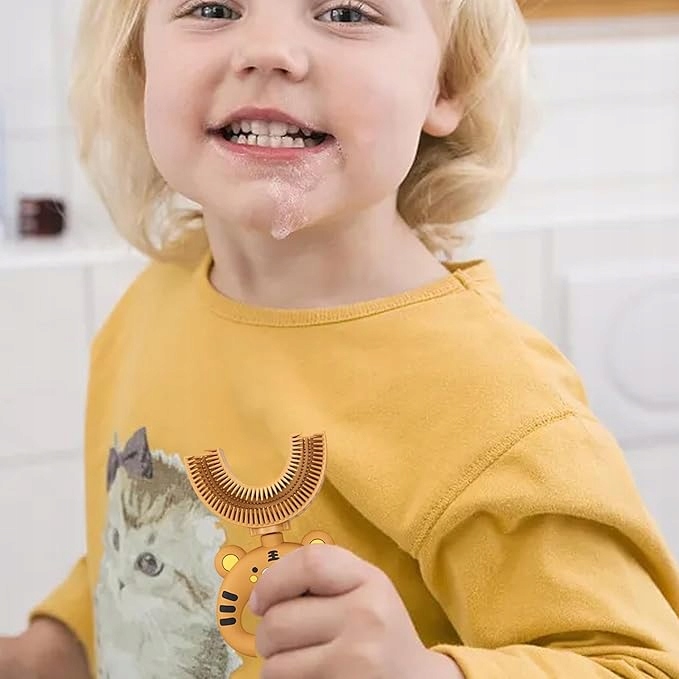 Уникальная форма на 360 градусов: U-образная форма обеспечивает тщательную очистку зубов со всех сторон. Это идеальное решение для детей, которым трудно пользоваться традиционными зубными щетками.