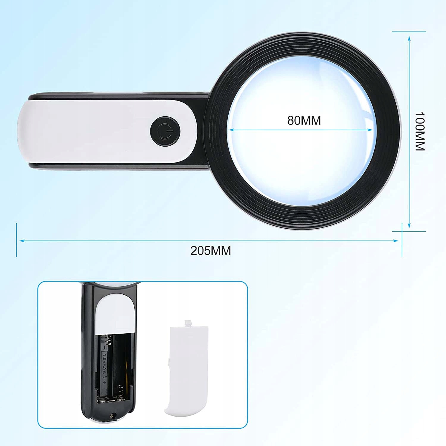 - - Управление одной кнопкой: простота использования и управления. Для использования фонаря просто вставьте 3 батарейки типа ААА (не входят в комплект). Выключатель питания на лупе также можно использовать для установки режима освещения.
