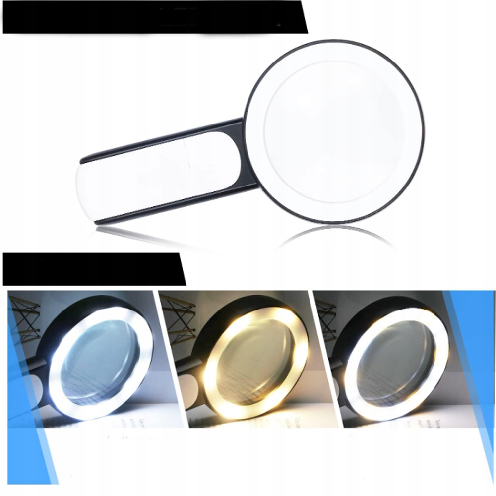 🔍18 светодиодов и 3 режима освещения : Эта лупа со светодиодной подсветкой имеет 18 светодиодов (12 ярких и 6 теплых) и обеспечивает 3 режима освещения (холодный, теплый и смешанный), что позволяет пользователям использовать ее ночью или в темных местах. Вы можете настроить освещение, подходящее для разных ситуаций, что полезно для людей с дегенерацией желтого пятна, дальнозоркостью или фейопией.
