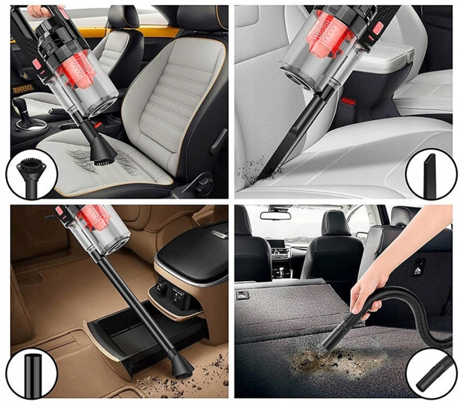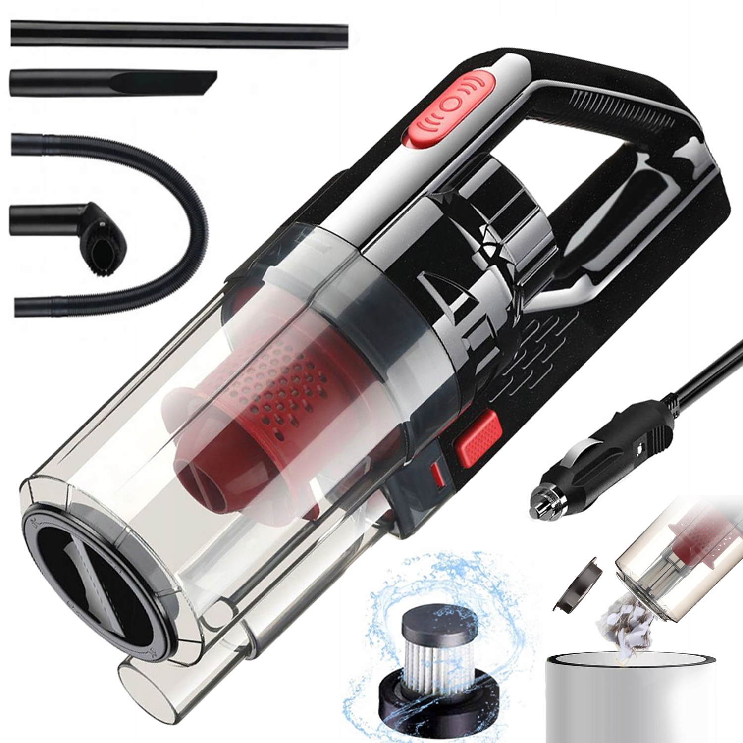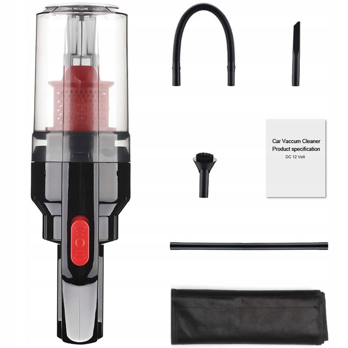 Автомобильный пылесос с 3 сменными насадками, HEPA-фильтром, прозрачным контейнером, удобной ручкой.