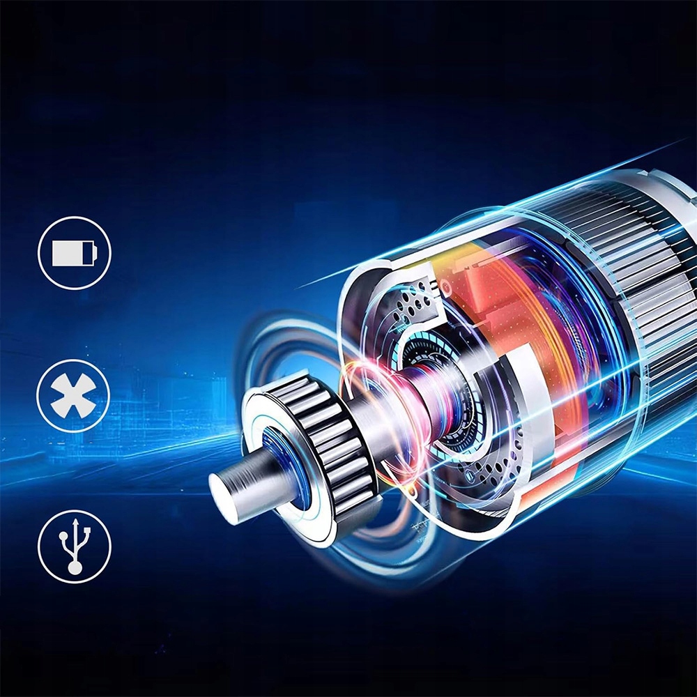 Портативный пылесос оснащен Турбинный двигатель, мощные двойные воздушные каналы, высокая скорость 65000R, сильное всасывание 2500-3500 Па, эффективно и быстро всасывает грязь, волосы домашних животных и другие сухие загрязнения под сиденьем, офисным ковром или кухонными углами.